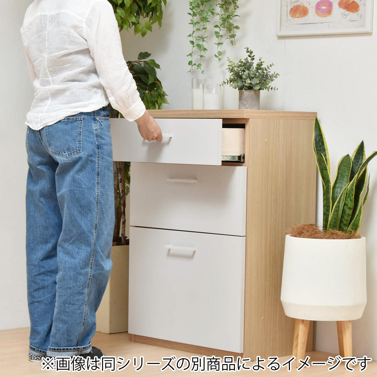 | 内容量 | 1台(チェスト+オープン引出し+開き戸) 付属品:可動棚2枚 |