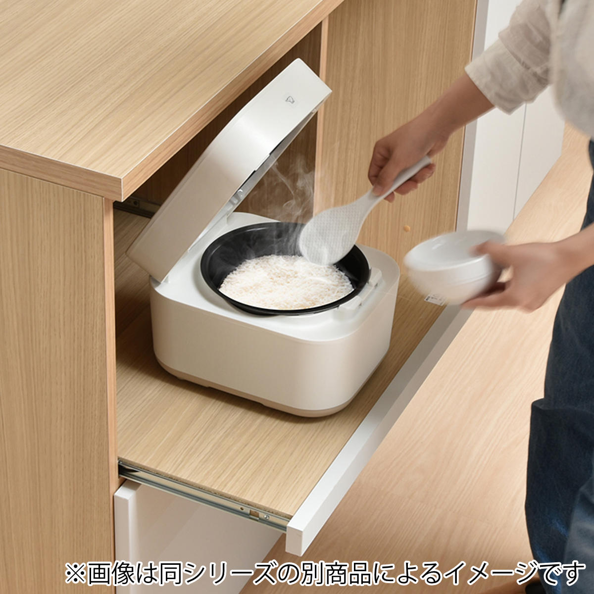 炊飯器や電気ポットなど、使う時だけ手前に引き出して使用することができるので、熱がこもらず安心です。