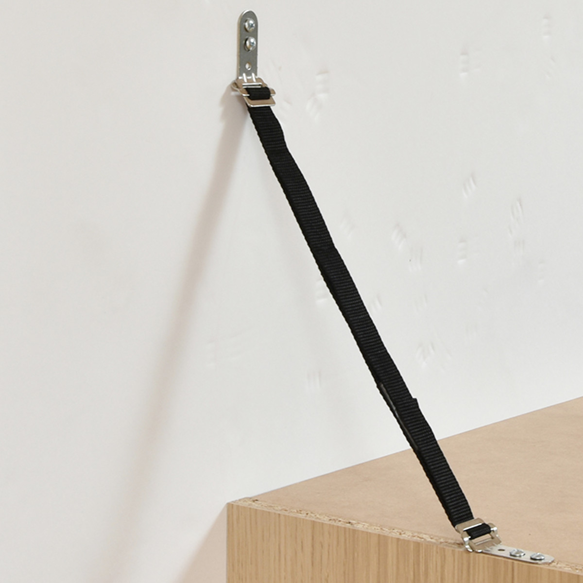 壁と固定して転倒防止用に使用できるベルトを付属しているので、万一のための耐震対策もできて安心です。
