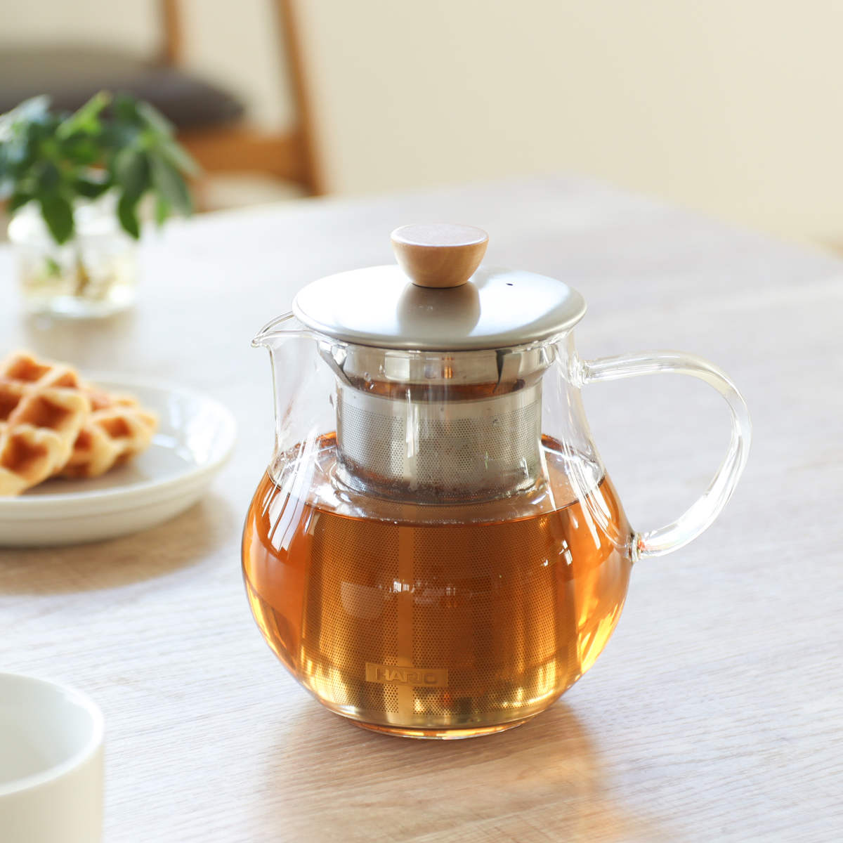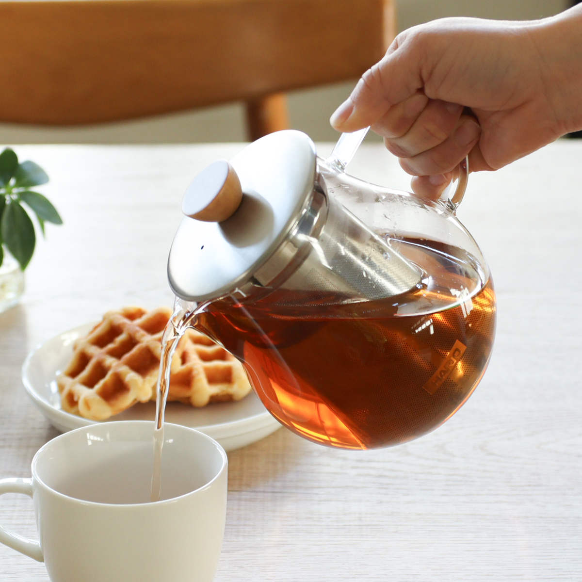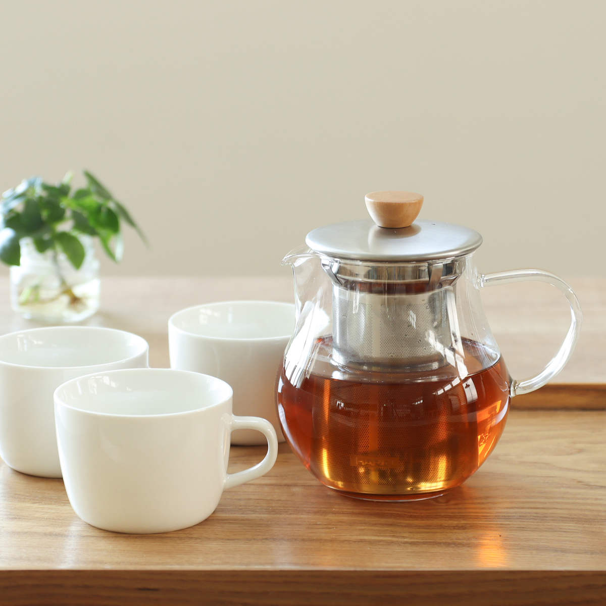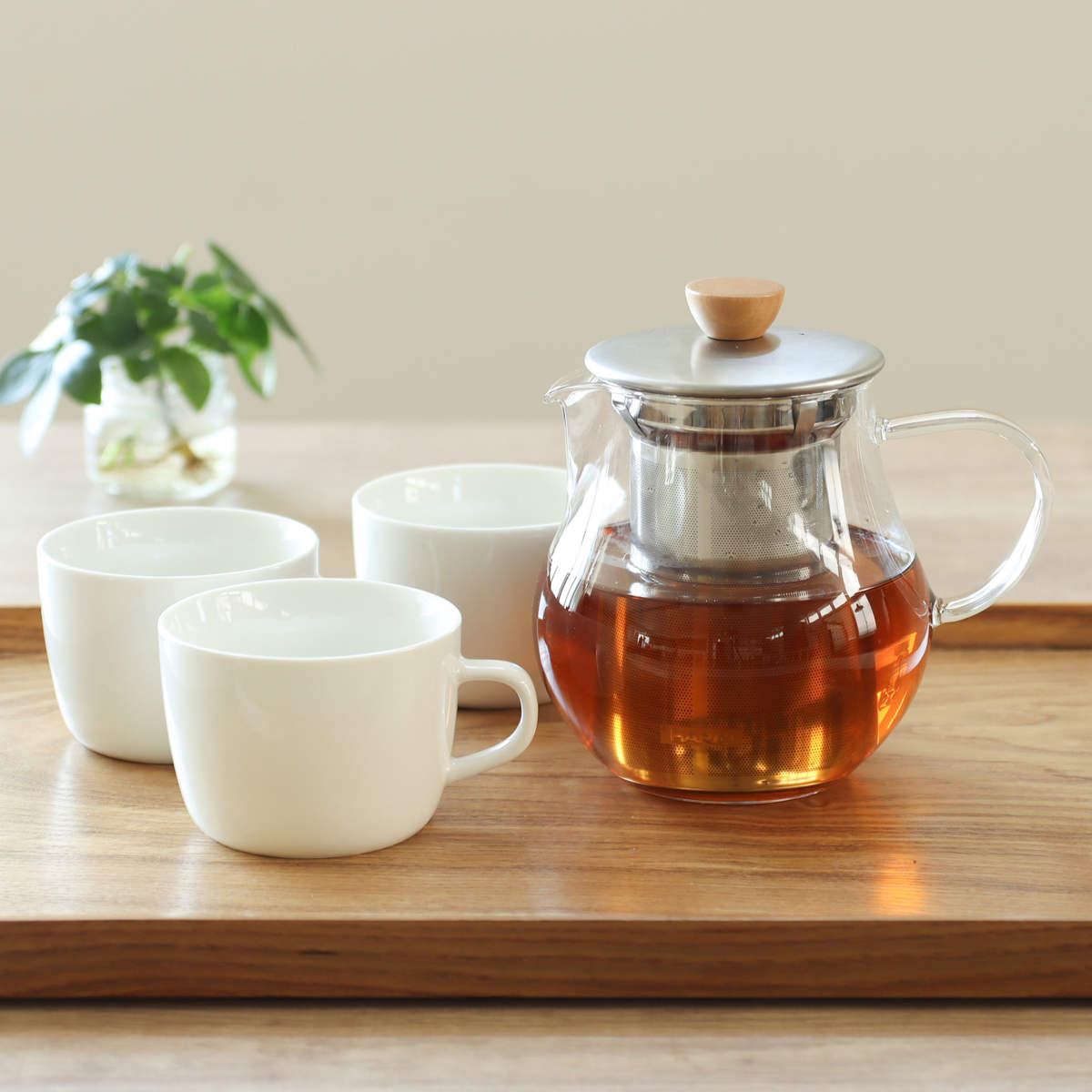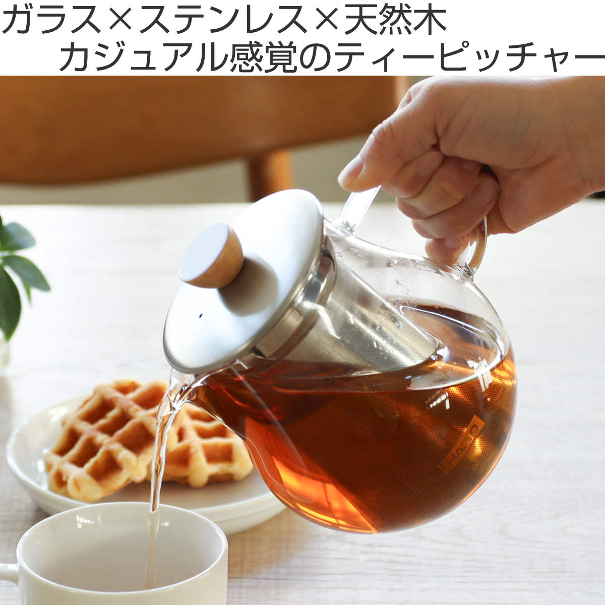 耐熱ガラスとステンレス、天然木を組み合わせたナチュラルな雰囲気のティーピッチャーです。透明なのでお茶の色を、目でも愉しみながらティータイムが過ごせます。3~5人分にちょうどいい、来客時にも活躍するサイズ感の700mlです。