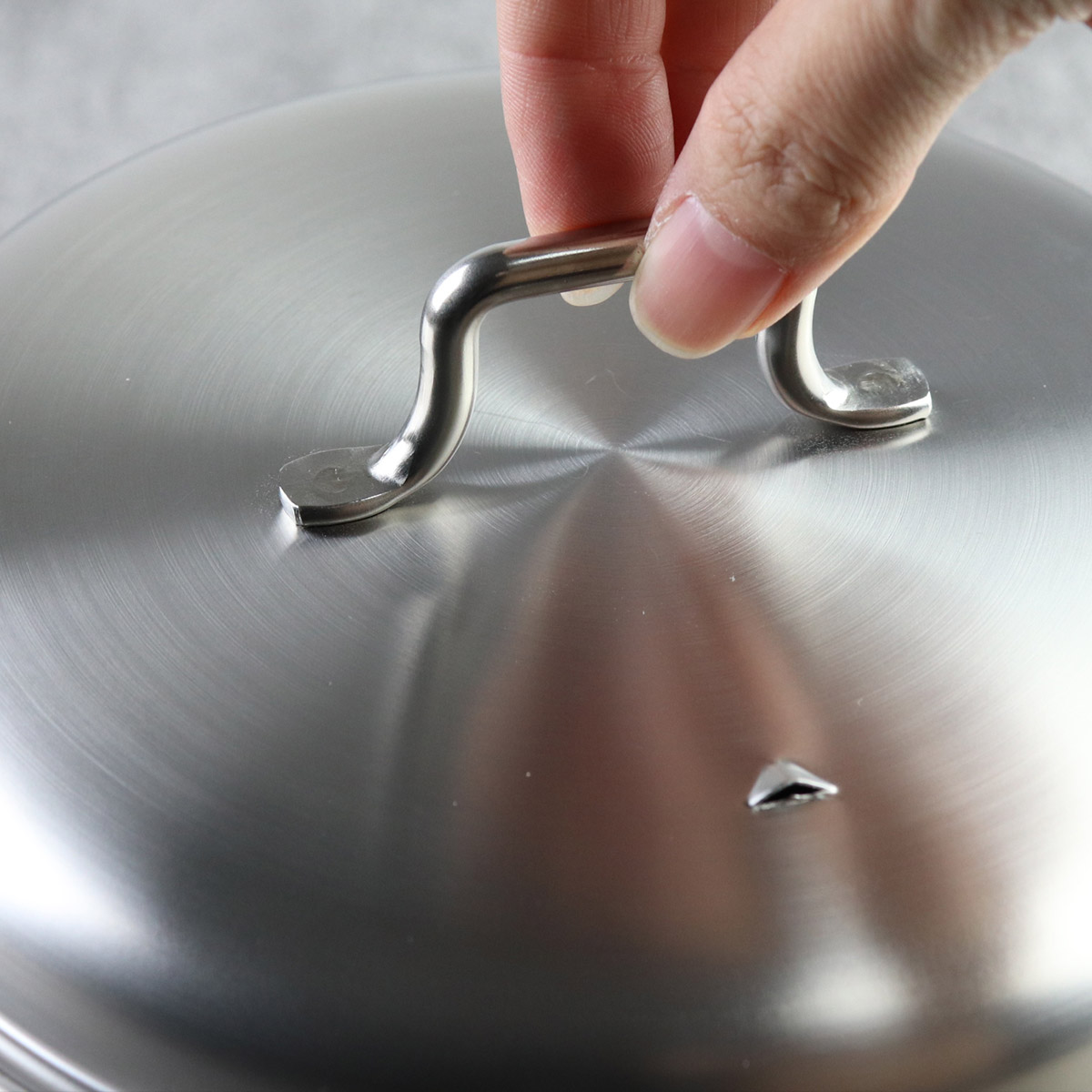 厚み、堅牢な持ち手、美しいサテン仕上げの逸品です。持ち手部分は溶接で接続されており、ネジ留めの場合よりも汚れが溜まりにくく、お手入れがしやすいように工夫もされています。耐久性に優れた18-8ステンレスは、10年、20年と末長く使い続けられます。