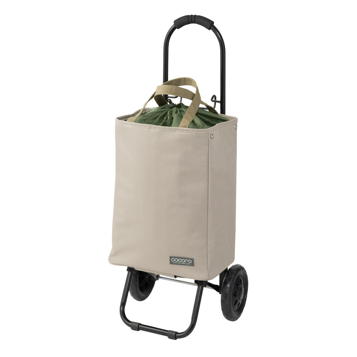 ショッピングカート cocoro トート カートセット 折りたたみ おしゃれ 大容量 軽い 保冷 ( キャスター付き 2輪 買い物 トートバッグ ショッピングバッグ コンパクト キャリーバッグ ショルダーバッグ 軽量 ) 【ベージュ】