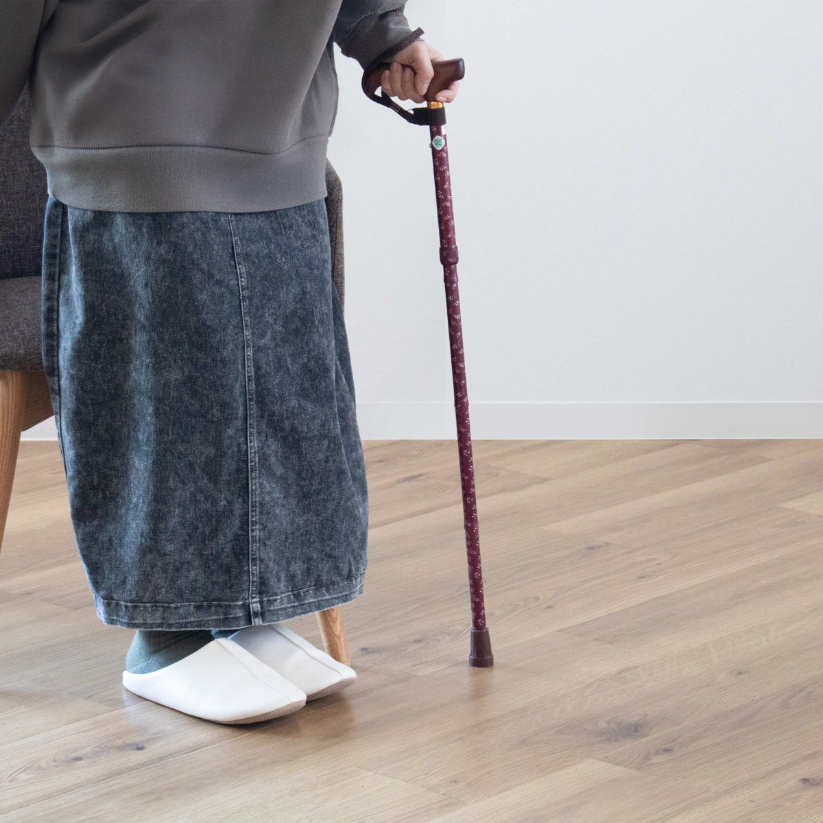 歩行時の使用はもちろん、椅子に座って立ち上がる際にもお使いいただけます。杖をうまく使用することで、椅子からの立ち上がりも楽になります。