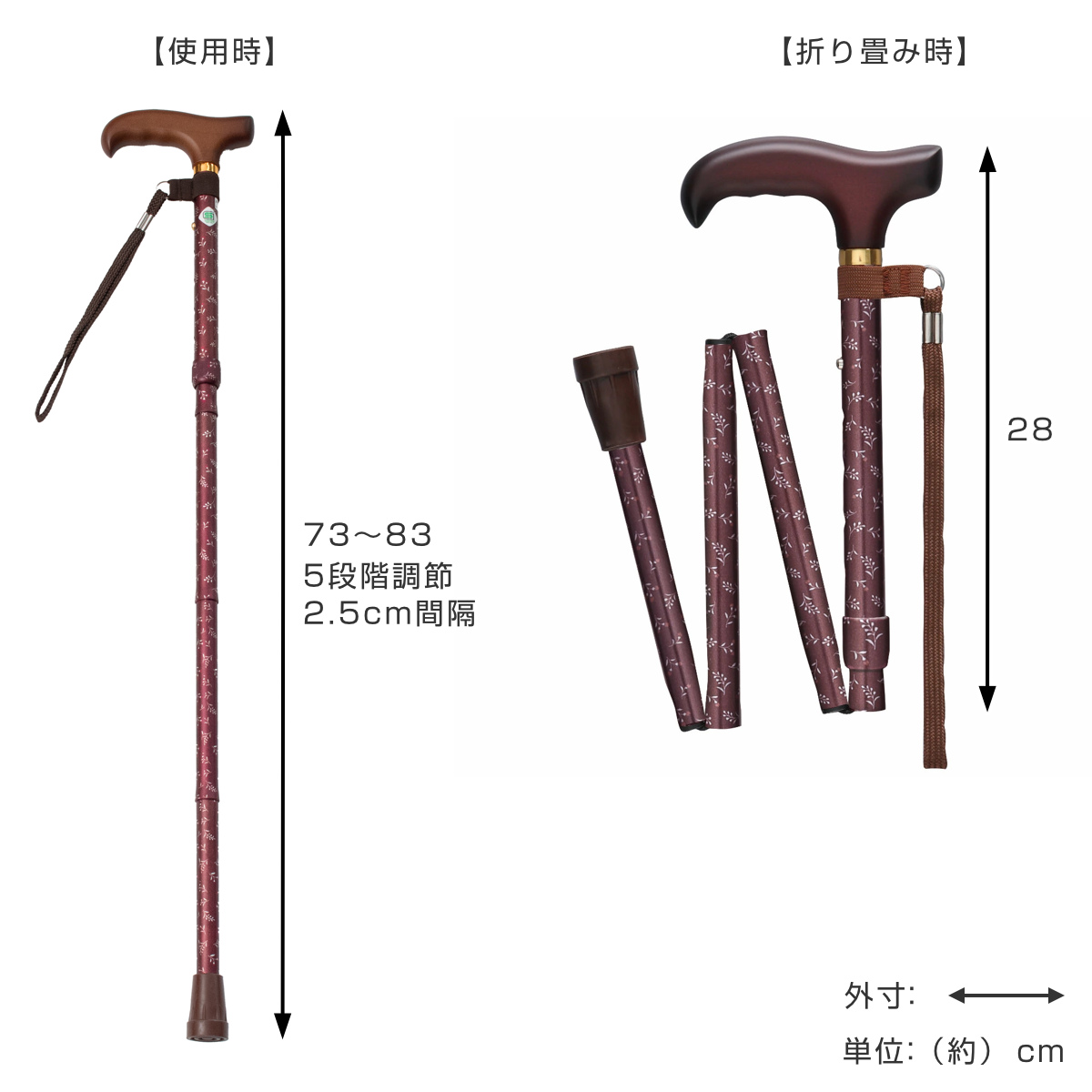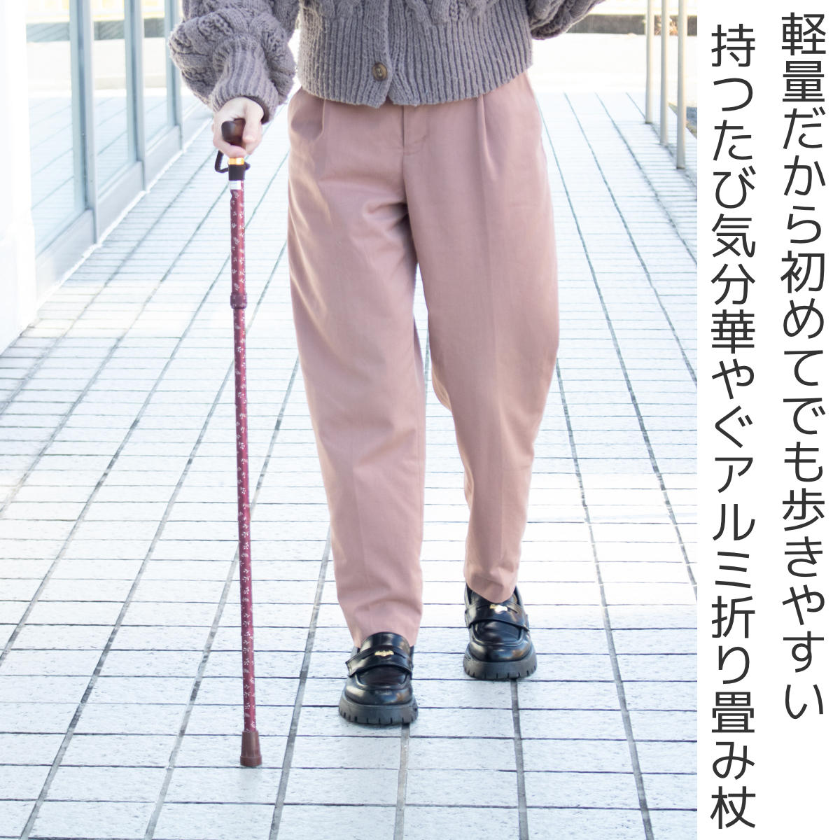 お出かけ先で使いたい人、車に常備したい人におすすめの折り畳み式です。疲れた時や急な坂道、長距離を歩く時など、一時的に頼りたい場面で役立ちます。約250gと軽量で扱いやすく、SGマーク認定商品なので安心してご使用いただけます。