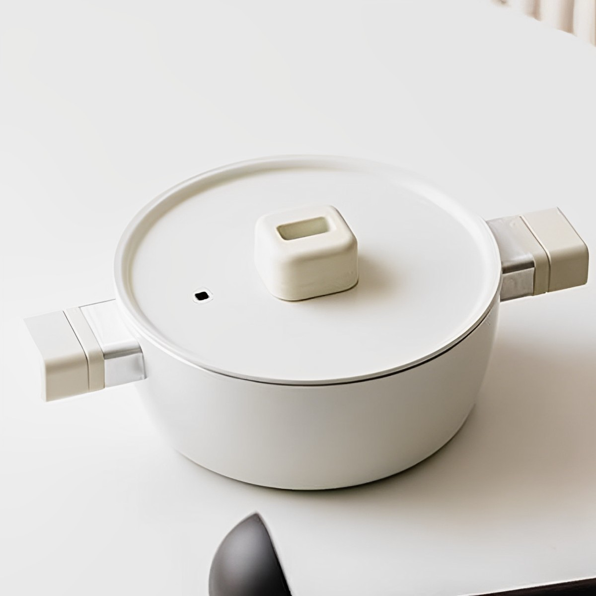 両手鍋 寄せ鍋 18cm IH対応 LUMI ドクターハウス ( Dr.HOWS ガス火対応 なべ お鍋 1人用鍋 蓋付き セラミック加工 韓国 浅型 18センチ 両手なべ セラミックコーティング アルミ製 軽量 かわいい おしゃれ )