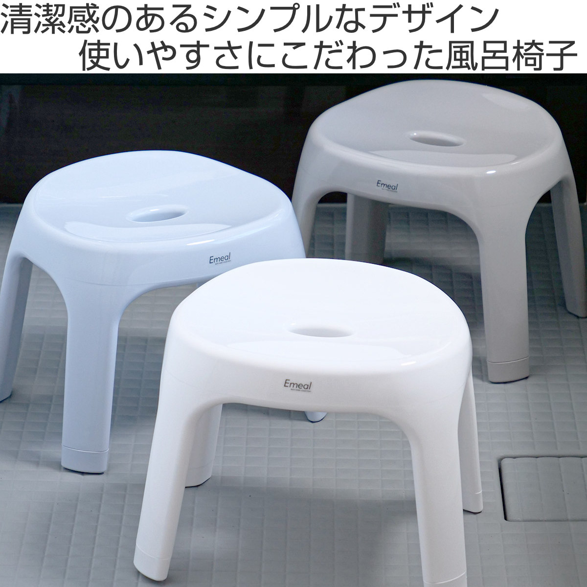 風呂椅子 座面高さ25cm Emeal エミール 日本製 ( 風呂 椅子 風呂いす お風呂 腰かけ イス 座面高25 入浴 抗菌 Ag抗菌加工 滑り止め バスチェア バスグッズ ブルー グレー ホワイト おしゃれ ) 【グレー】
