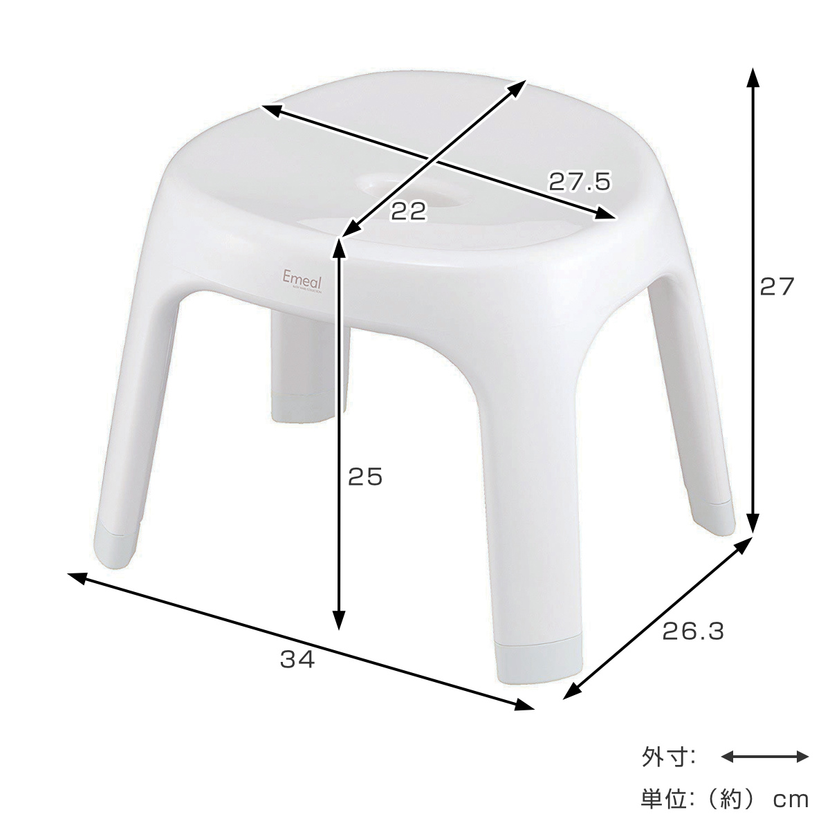 | サイズ | 約 幅34×奥行26.3×高さ27(cm) 座面高:約 25(cm) 座面:約 縦22×横27.5(cm) |