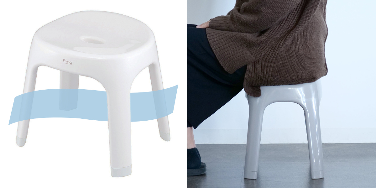 | 抜群の通気性 湿気の多い浴室だからこそ、通気性にこだわりました。脚の部分がフルオープンなので風通しがよく素早く乾燥、カビの発生を押さえます。 | 洗練されたディテール 座面は、座りやすく安定感のある丸い形状になっています。体に沿うようなカーブが体に優しくフィットします。 |