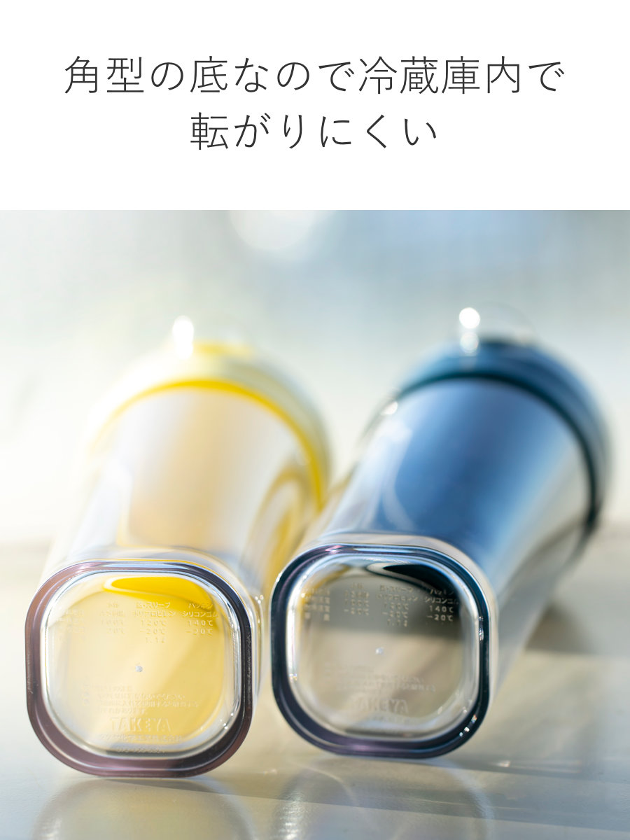 パッキン付きで漏れる心配がなく、密閉性が高いので縦にも横にも保存できます。