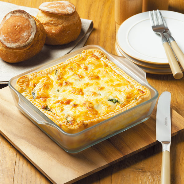 世界初のセラミックコーティング加工により、こびりつきにくく、さっと汚れが落ちるストレスフリーな耐熱ガラス調理器です。2人分のキッシュやグラタンにちょうど良いサイズです。