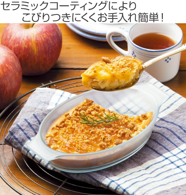 グラタン皿 一人用 オーバルロースターM 20×12cm CERA BAKE セラベイク 耐熱ガラス ( 食洗機対応 電子レンジ対応 オーブン対応 ガラス 耐熱皿 耐熱容器 耐熱 セラミック加工 くっつきにくい 耳付き オーバル 楕円 おしゃれ 1人 )