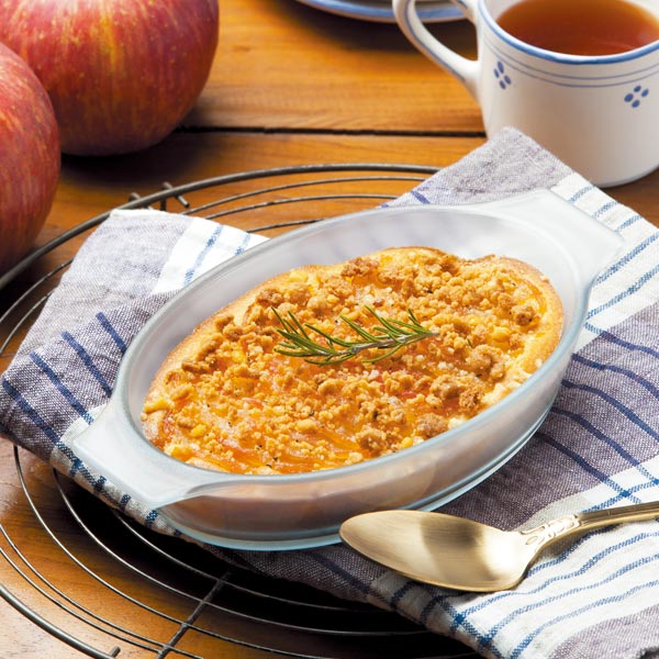世界初のセラミックコーティング加工により、こびりつきにくく、さっと汚れが落ちるストレスフリーな耐熱ガラス調理器です。少なめの一人分のグラタンやラザニアなどにちょうど良いサイズです。