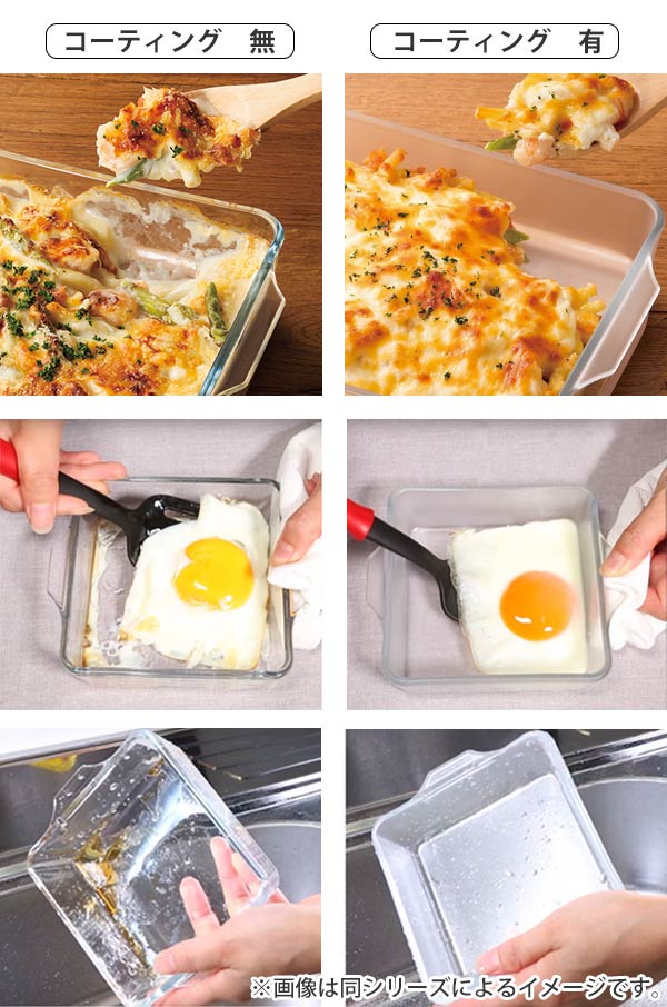 世界初のセラミックコーティング加工により、こびりつきにくく、さっと汚れが落ちるストレスフリーな耐熱ガラス調理器です。少なめの一人分のグラタンやラザニアなどにちょうど良いサイズです。