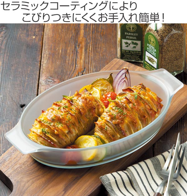 グラタン皿 一人用 オーバルロースターL 27×16cm CERA BAKE セラベイク 耐熱ガラス ( 食洗機対応 電子レンジ対応 オーブン対応 ガラス 耐熱皿 耐熱容器 耐熱 セラミック加工 くっつきにくい 耳付き オーバル 楕円 おしゃれ 1人 )
