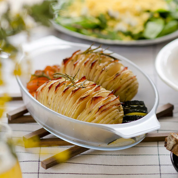 セラベイクシリーズは、調理後そのまま食卓に出せるシンプルでスタイリッシュなデザインです。グラタンやラザニアだけでなく、ケーキやアップルパイなどのお菓子作りなど、様々なオーブン料理に使えます。シリーズで揃えてランチビュッフェなどの使用もおすすめです。