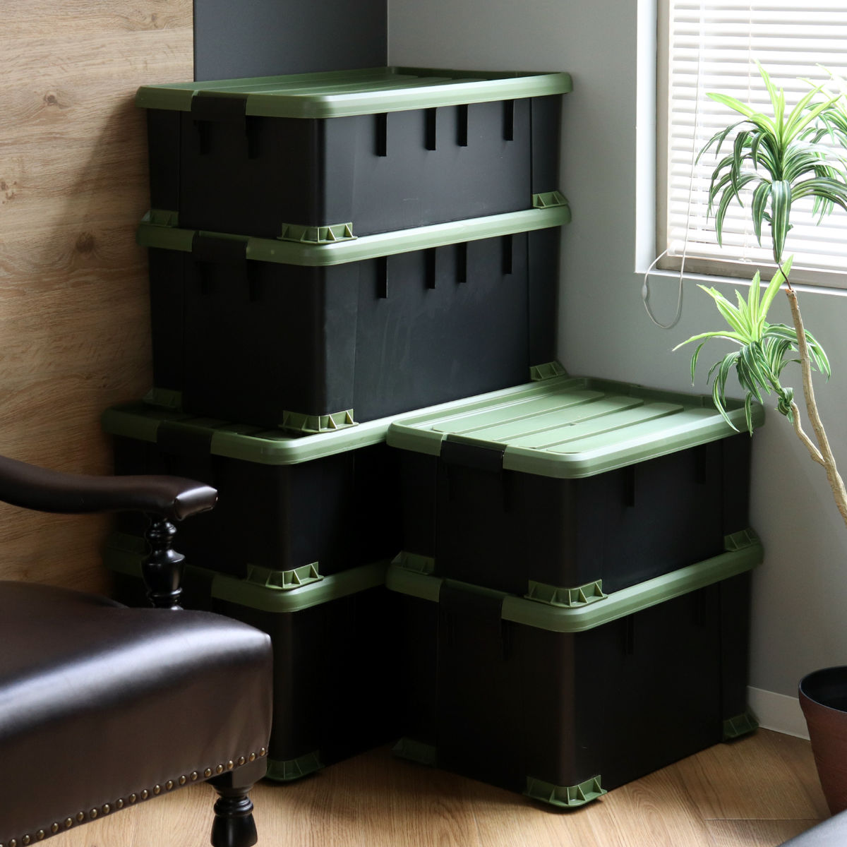 日用品や工具などを収納しておくのに便利な収納ボックスです。細かいものをざっくり入れてもフタを閉めることで生活感を隠すことができます。ミリタリーテイストなデザインでリビングやキッチンなど見えるところに置いてもスタイリッシュさを保てます。