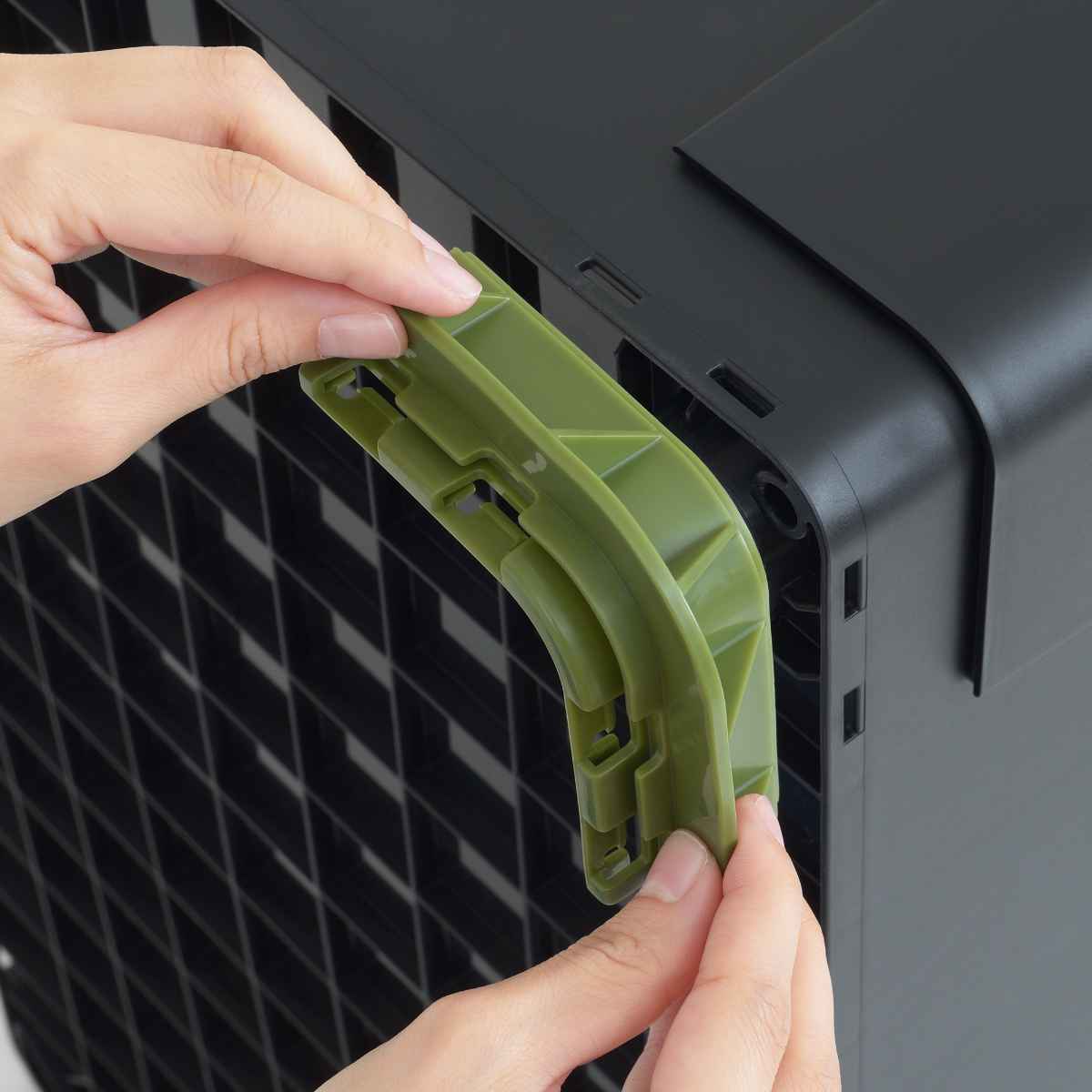 底の四隅に付けられるコーナーパーツは用途に合わせて取り外しが可能です。付けた状態であれば、フタがなくてもボックス同士を安定して積み重ねることができます。ボックスを使用しない時は取り外して、入れ子状態にしてコンパクトに保管しておけます。