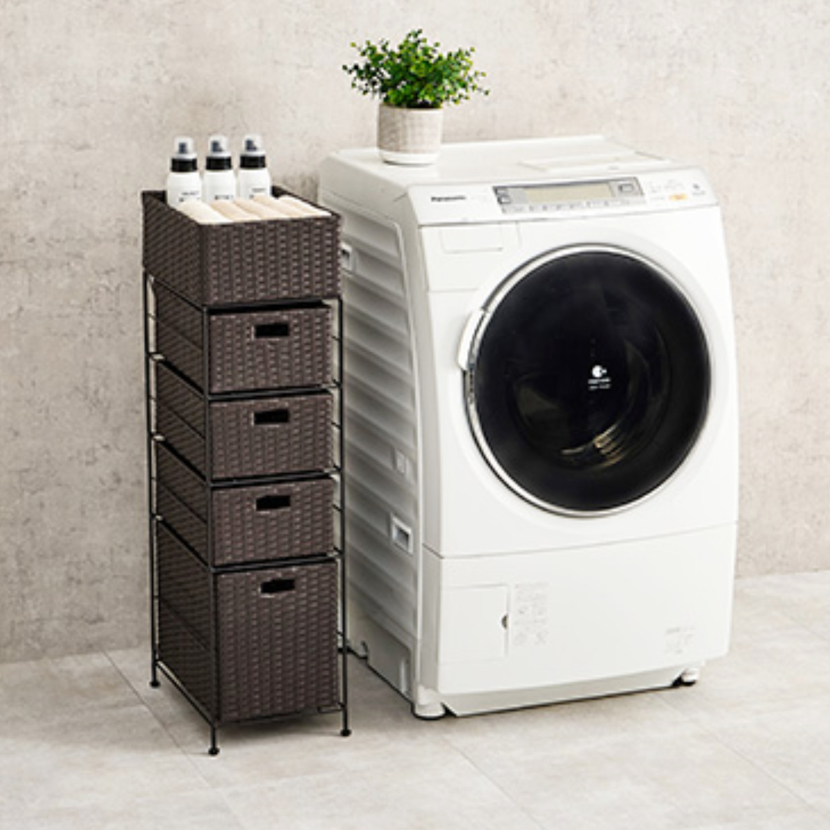 手軽に使えるラタン調ランドリーチェスト 引出し4杯