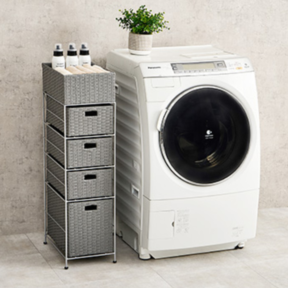 洗濯機や洗面台の横にできがちな「もったいないすき間」にしっかり収まる、幅25.5cmのランドリーチェストです。