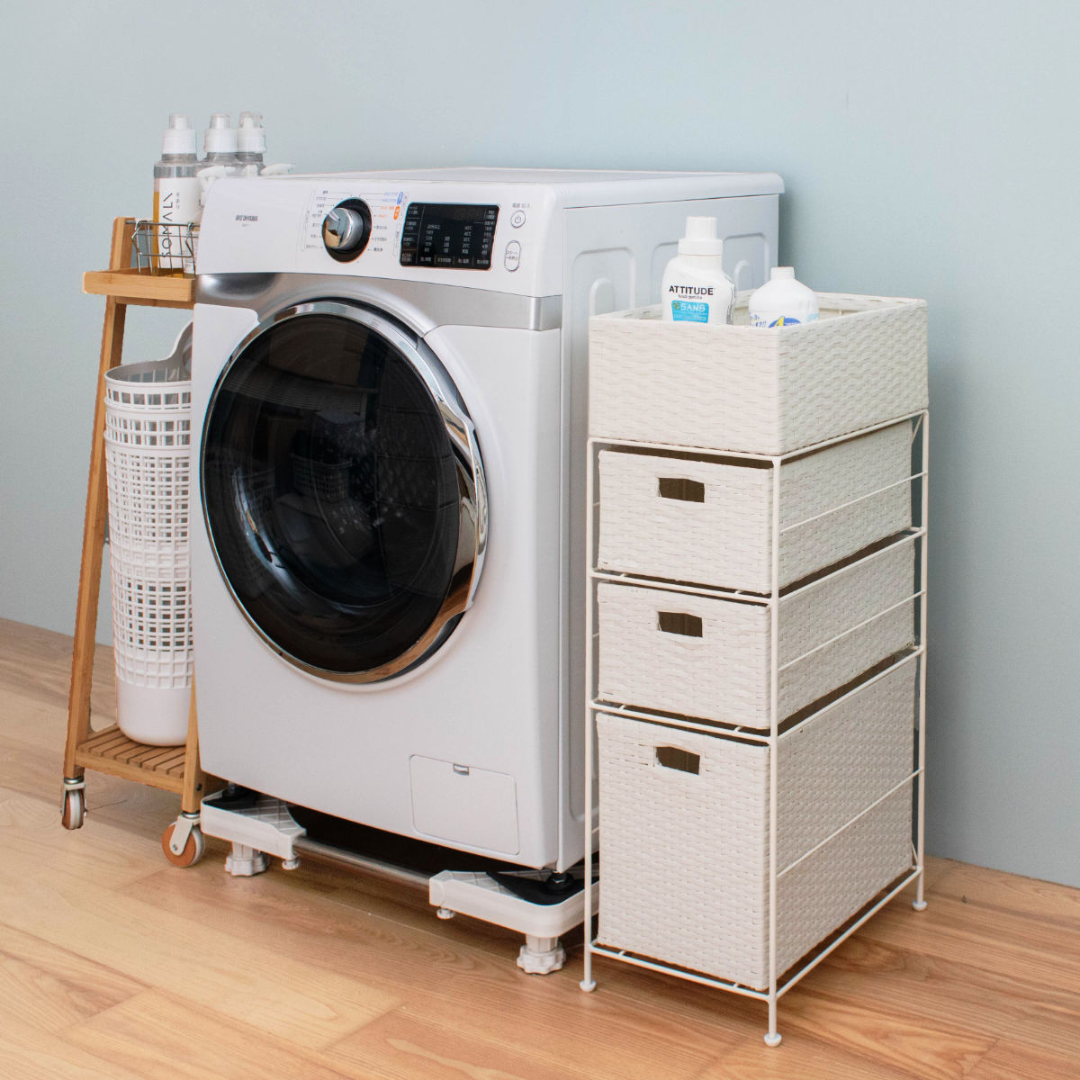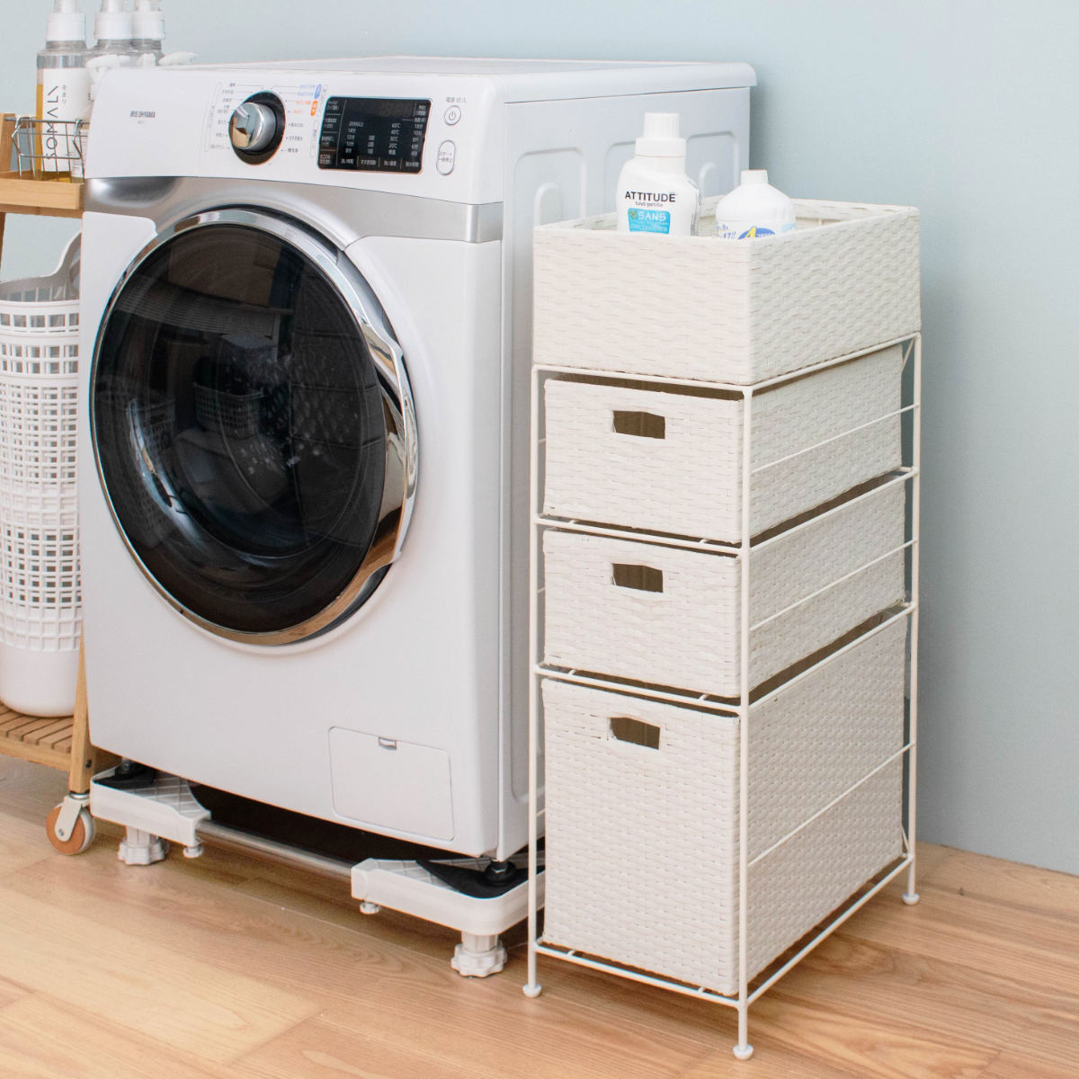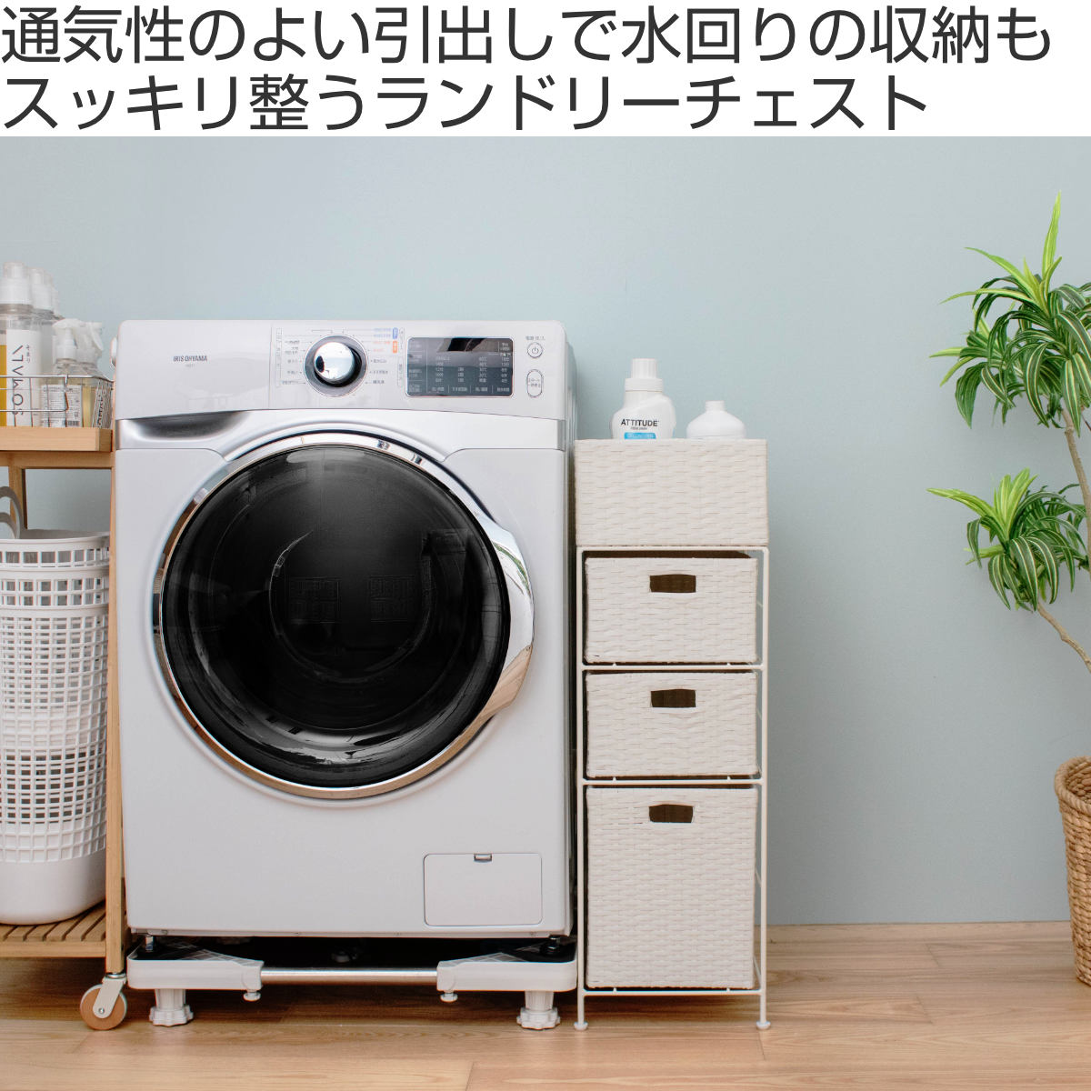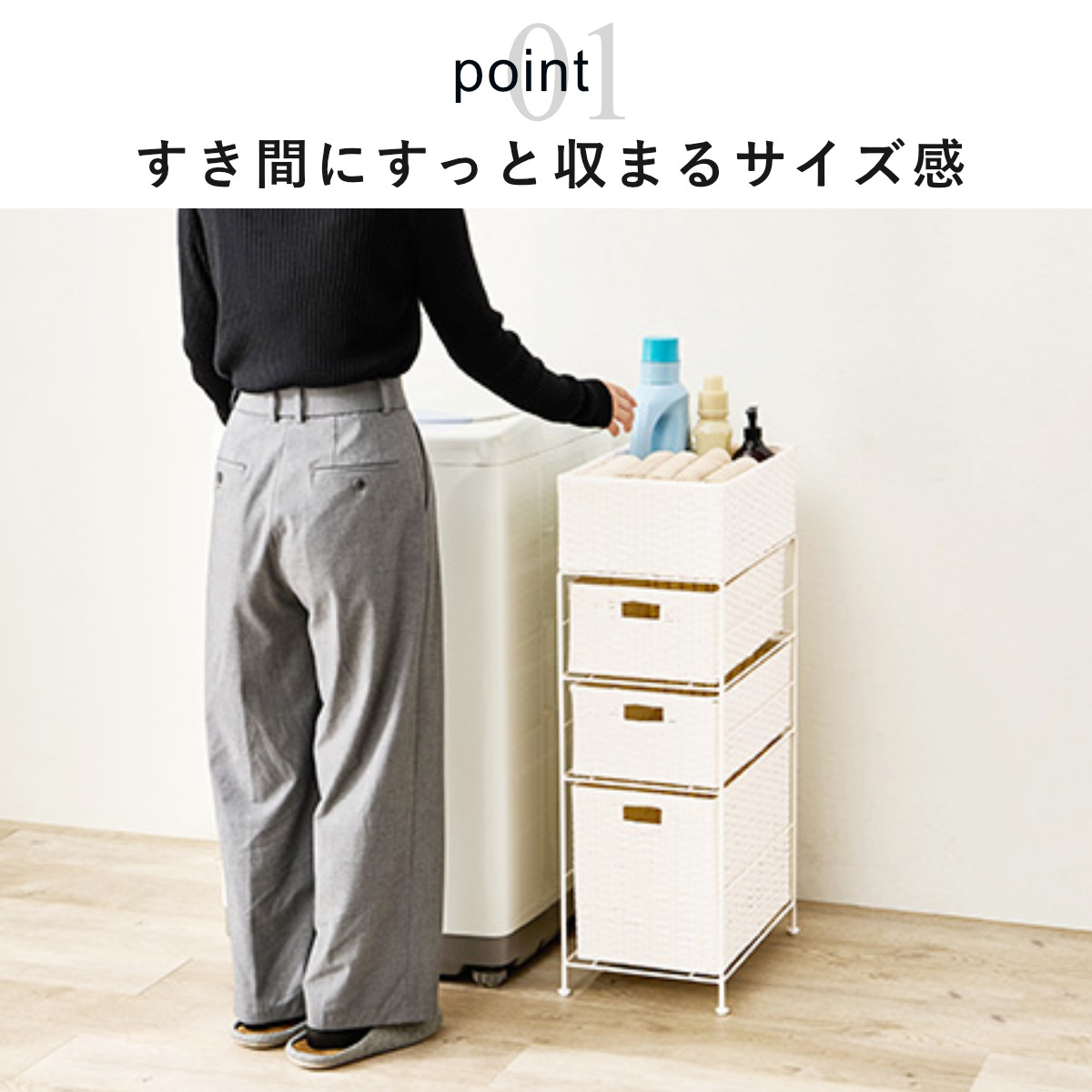 洗濯機や洗面台の横にできがちな「もったいないすき間」にしっかり収まる、幅25.5cmのランドリーチェストです。