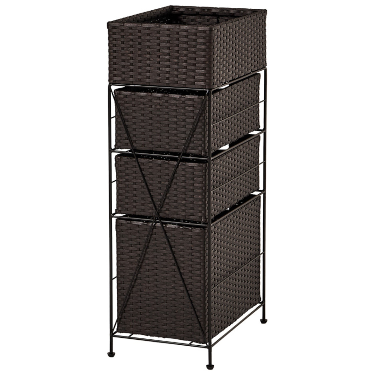 ランドリーチェスト 引出し3杯 幅25.5cm かご付 スチール ポリエチレン ( ラタン調 ランドリー チェスト ラック 防水 アジアン 収納 かご 完成品 ラタン風 洗濯 ランドリーラック 撥水 収納ラック すき間収納 キッチンラック ) 【ダークブラウン】