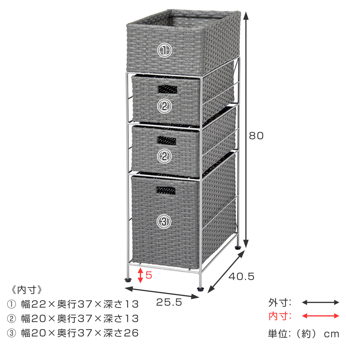 | サイズ | 約 幅25.5×奥行40.5×高さ80(cm) |