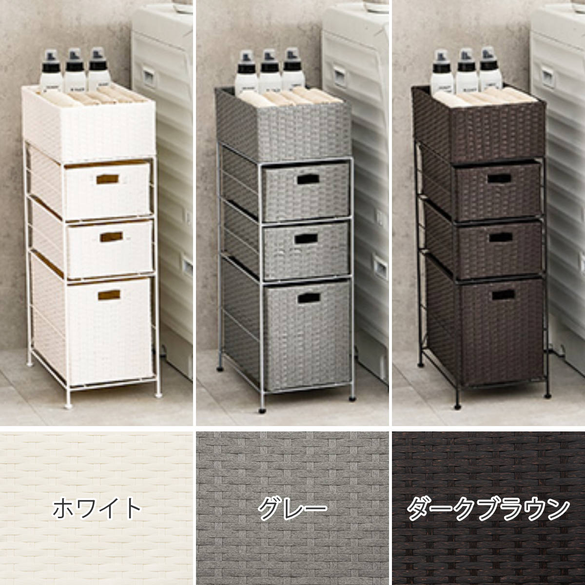 関連キーワード:樹脂製 オシャレ おしゃれ お洒落 アジアンテイスト 手編み タンス 整理タンス 引き出し 整理 衣類収納 タオル 洗面所 リビング シンプル 籠 ホワイト 白 グレー 灰色 ダークブラウン