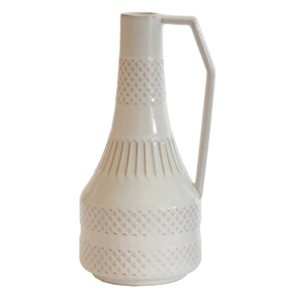 表面に幾何学的な連続模様が施されたフラワーベースです。高さがあるので枝ものも挿せます。シンプルなデザインなので、生花はもちろん、ドライフラワーを挿しても素敵です。上品な光沢があり、高級感のある雰囲気を演出します。