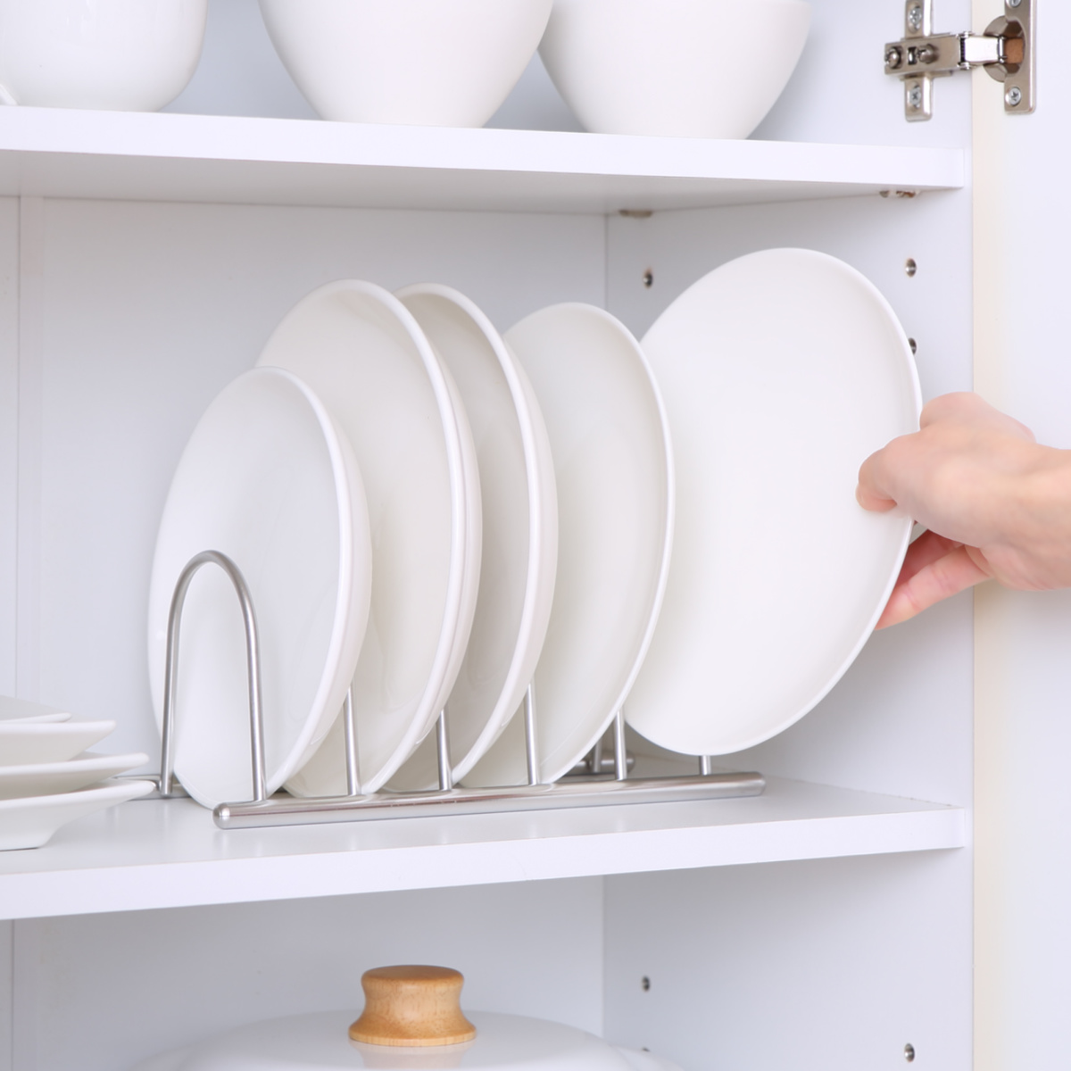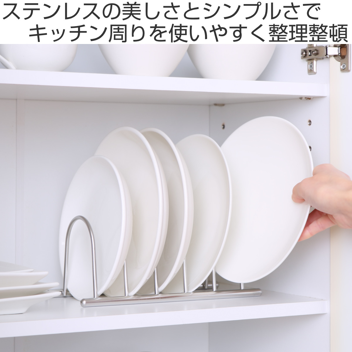 収納場所のスペースに合わせて横向き・縦向きどちらでも使用できます。お皿の深さや大きさがバラバラでもスッキリと収納可能。風通しも良く清潔に保てます。