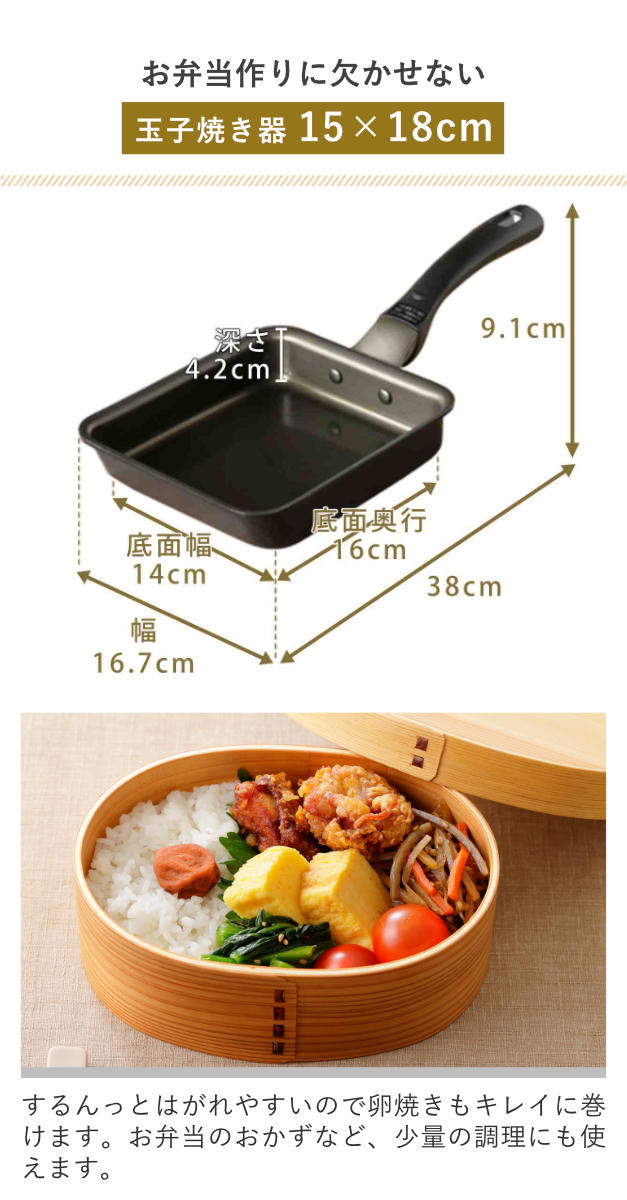 卵焼き器 15×18cm IH対応 スタンディ PFOAフリー ( ガス火対応 たまご焼き器 玉子焼きフライパン エッグパン ふっ素加工 ウェルフロン 卵焼き 玉子焼き フライパン 朝食 弁当 時短調理 軽量 アルミ製 こびりつかない 焦げ付かない )