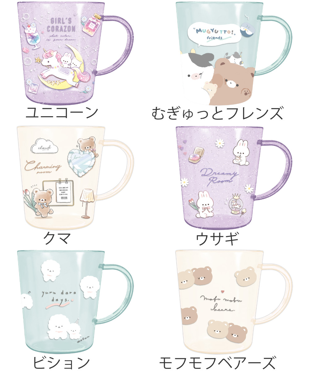 | 種類 | ユニコーン、むぎゅっとフレンズ、クマ、ウサギ、ビション、モフモフベアーズ |