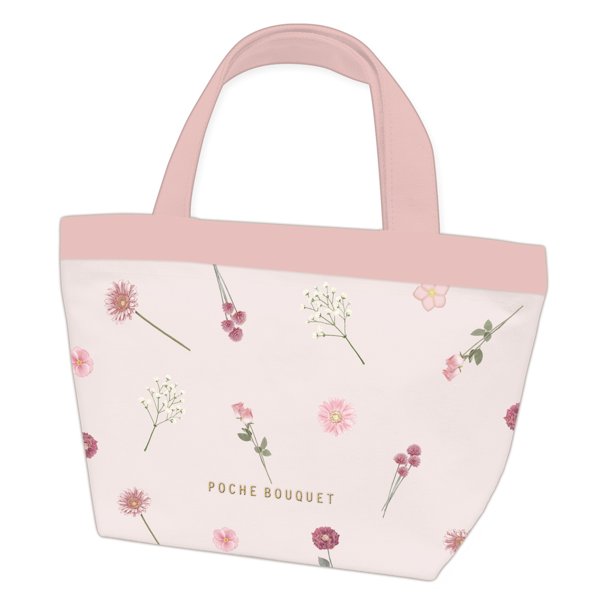 ランチバッグ ポシェブーケ 保冷 トート ( 保冷ランチバッグ 弁当袋 お弁当袋 ランチトートバッグ ランチトート 女子 お弁当箱 弁当 袋 ランチ マチ付き お弁当入れ 手提げかばん 女性 ) 【ピンク】