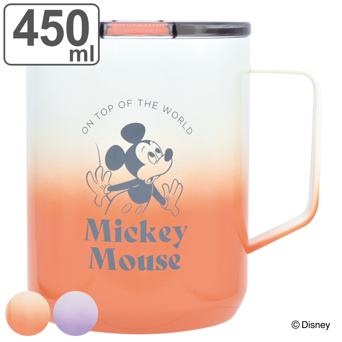 マグカップ 450ml ミッキーマウス ステンレス ( ステンレスマグ ステンレス製 保温 保冷 カップ コップ マグ コーヒー 紅茶 ふた付き 持ち運び スライド式 キャラクター 持ち手付き ミッキー ディズニー ) 【アイボリー×レッド】