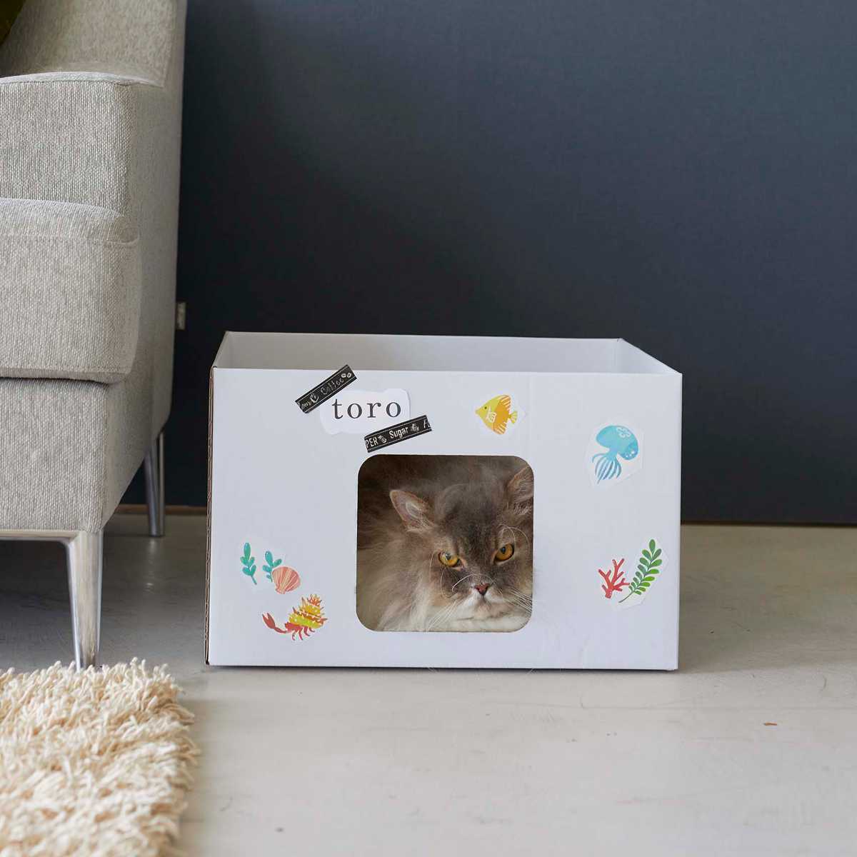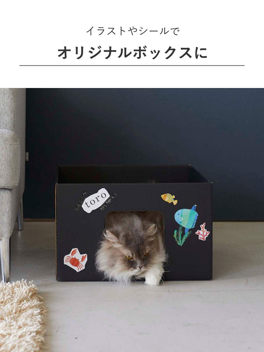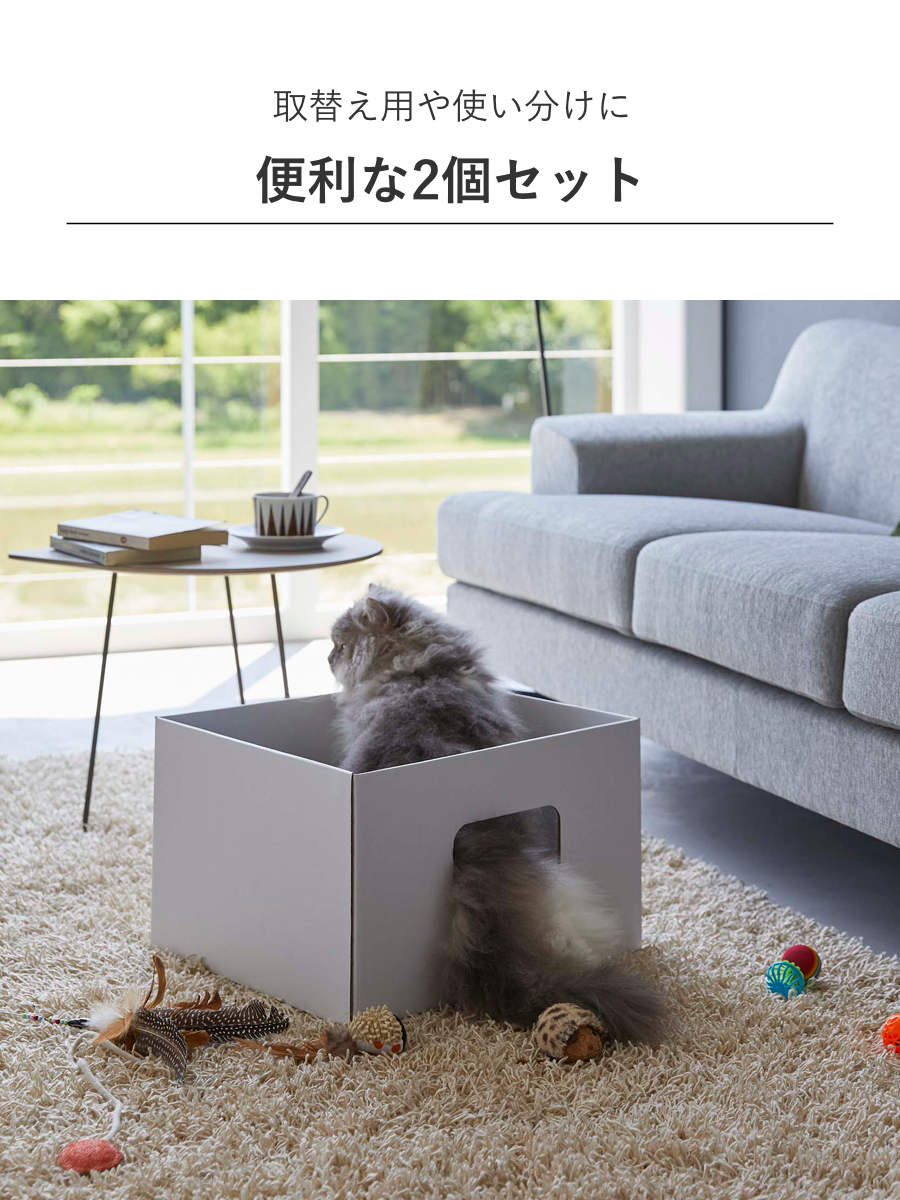 廃棄の際はリサイクルできるエコなキャットボックス2個組です。金具などがなく、丈夫なダンボール素材なので安全に使用できます。