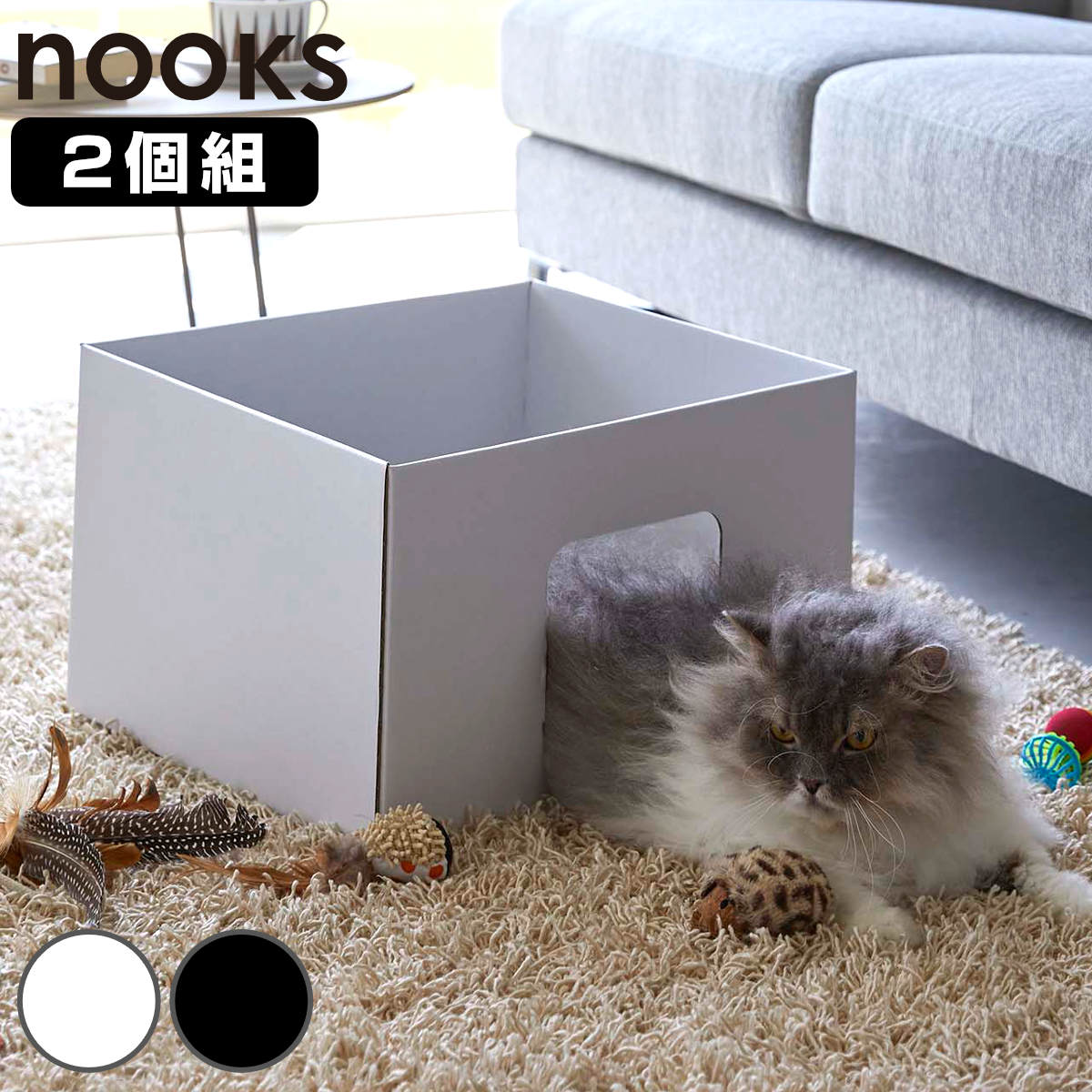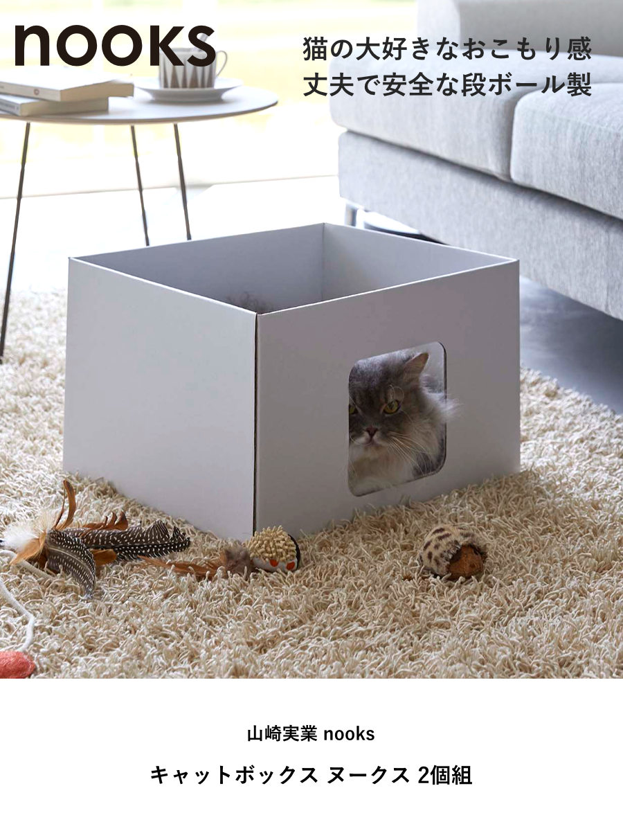 山崎実業 tower キャットボックス タワー 2個組 ( 4903208061377 タワーシリーズ キャットハウス 猫ハウス 猫ボックス 紙製 日本製 ねこ ネコ 猫 ハウス 箱 ペット 窓付き ) 【ホワイト】