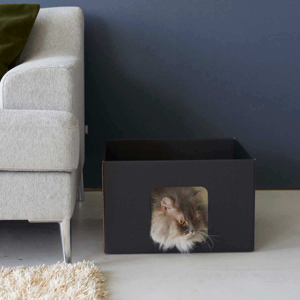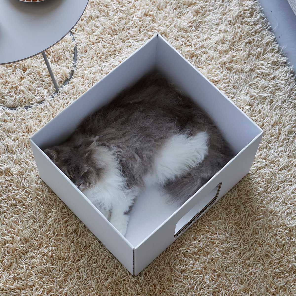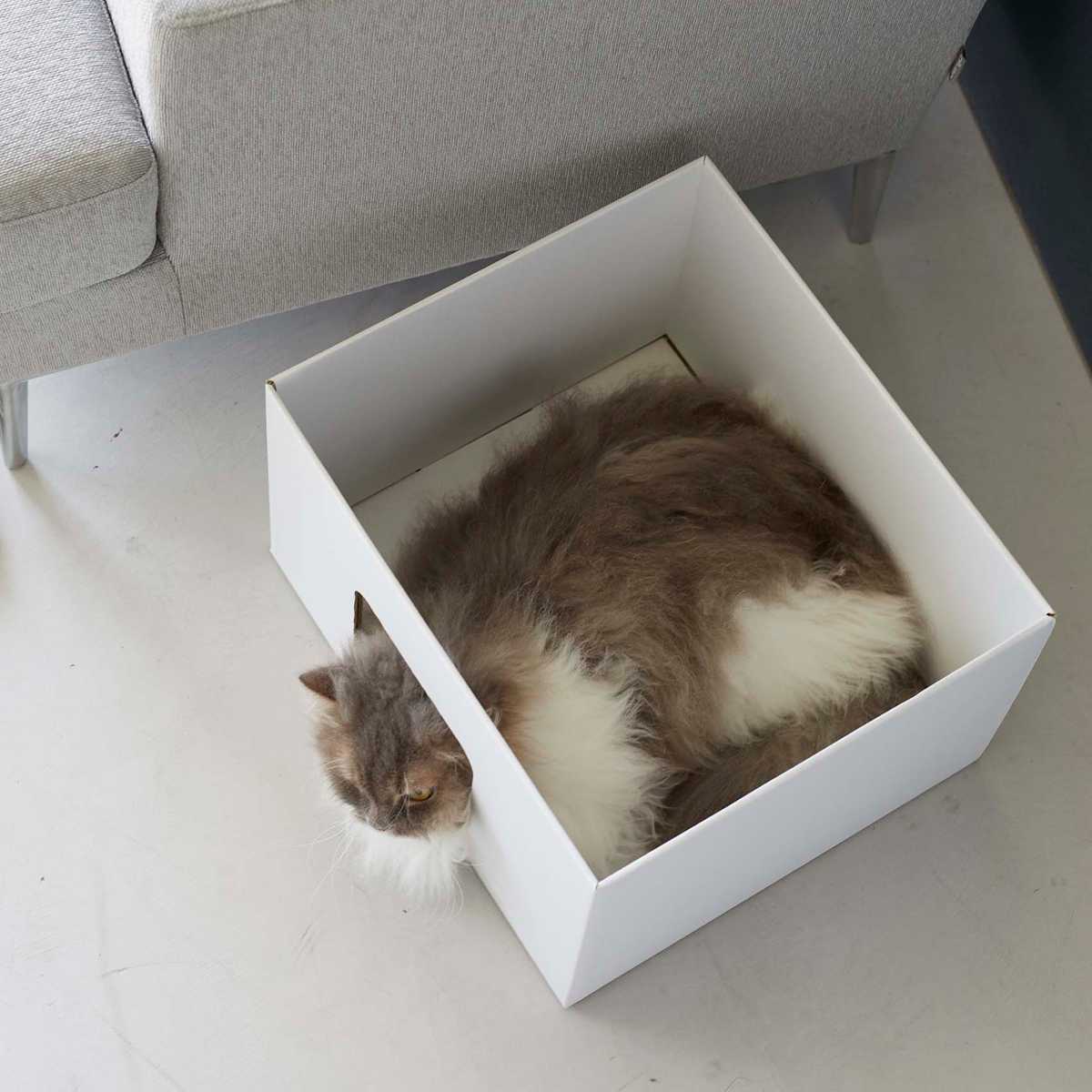 大きすぎないサイズで、狭い場所を好む猫が中にすっぽりと入ってくつろげます。