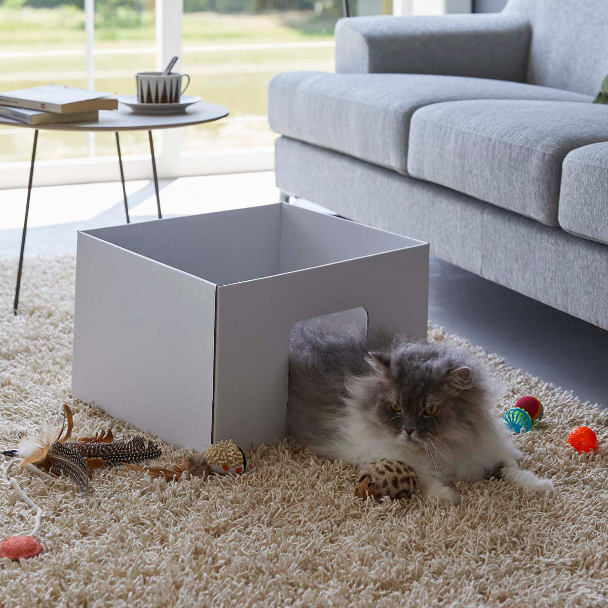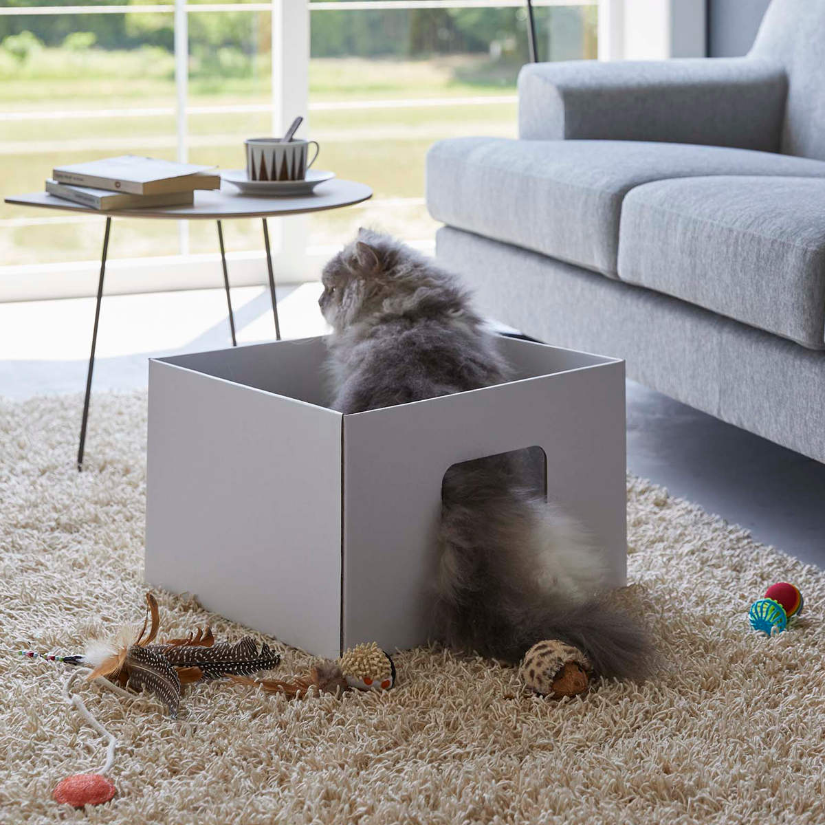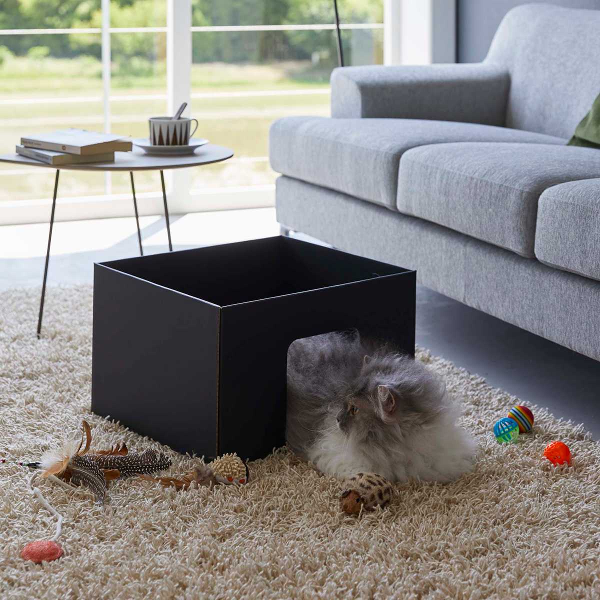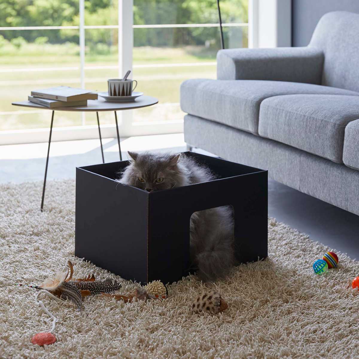 大きすぎないサイズで、狭い場所を好む猫が中にすっぽりと入ってくつろげます。