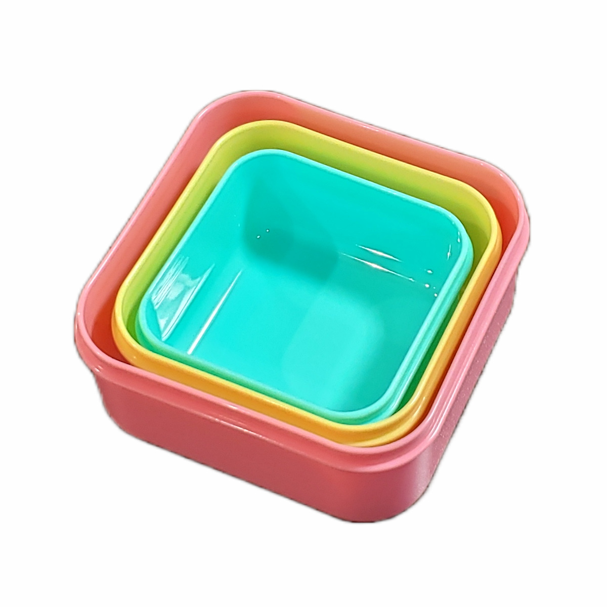 3サイズが1セットになったお弁当箱です。大サイズが約530ml、中サイズが約360ml、小サイズが約230mlです。ご飯、おかず、デザートなどメニューによって容器を使い分けることができます。お弁当箱としてだけではなく、保存容器としてもお使いいただけます。