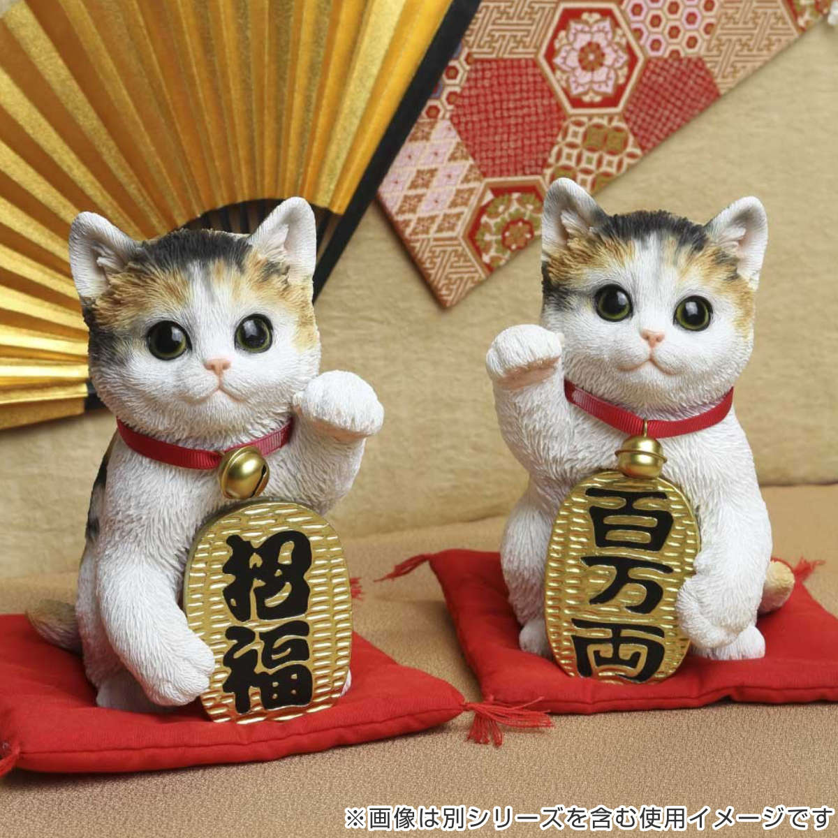 右手を挙げて「金招き」する姿がかわいらしい猫のオブジェです。まるで生きているかのような表情が特徴で、癒されること間違いなしです。お庭のアクセントとしてはもちろん、玄関やお部屋のインテリアとして飾っていただくことで、ペットのいるような暮らしを楽しめます。