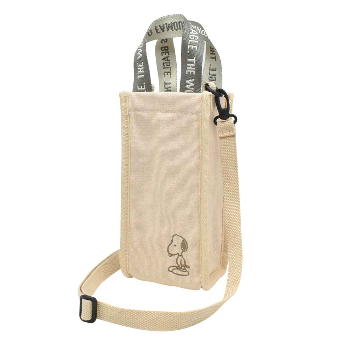 ボトルカバー スヌーピー 保冷 ( SNOOPY 保温 水筒 ペットボトル カバー ケース ペットボトルケース 水筒カバー ショルダーベルト付き キャンバス地 ) 【ベージュ】