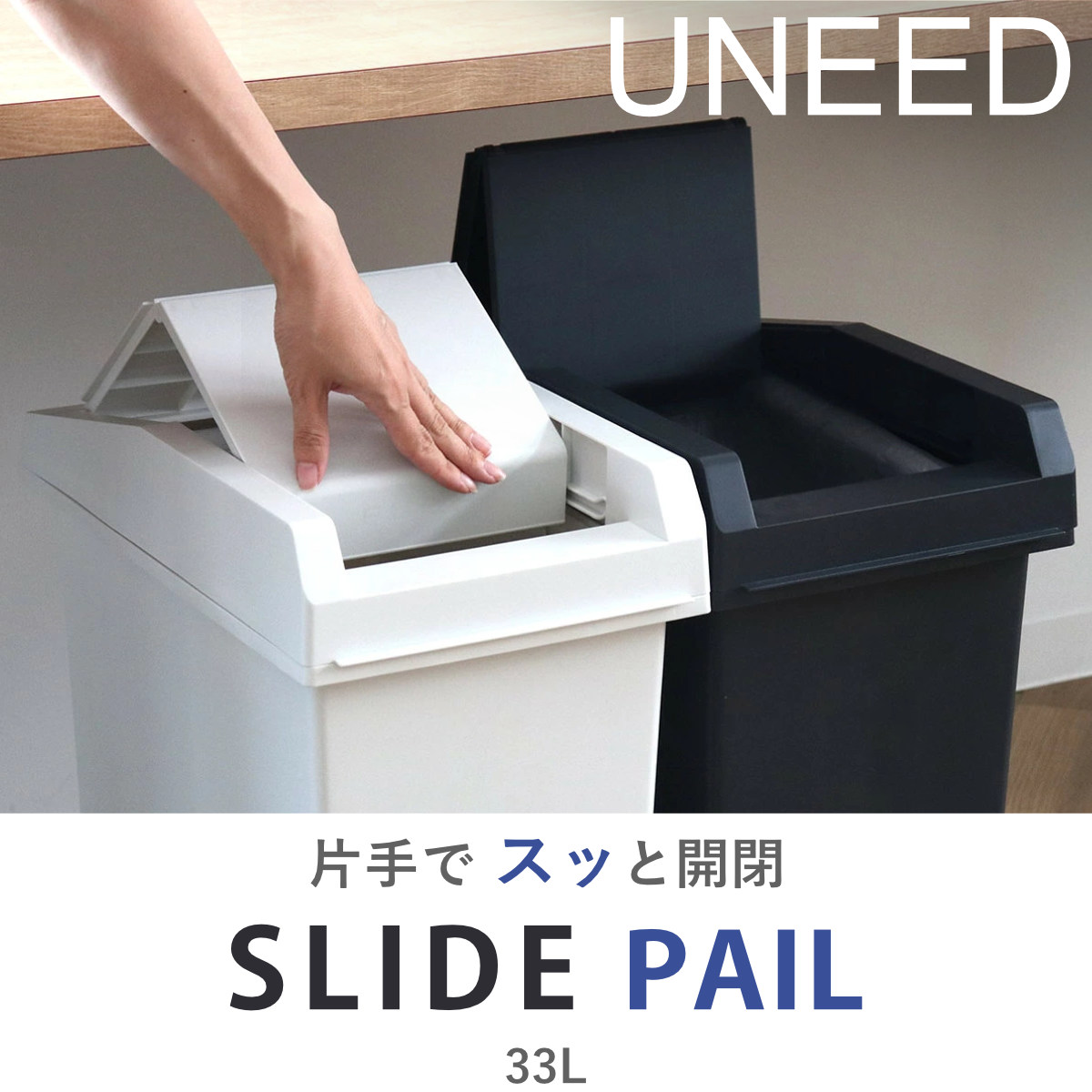 ゴミ箱 33L ユニード スライドペール ( UNEED ごみ箱 33リットル 棚下OK ふた付き スライド式 スリム 分別 シンプル おしゃれ ホワイト ブラック 無地 キッチン 袋が見えない 袋止め付 ) 【ホワイト】