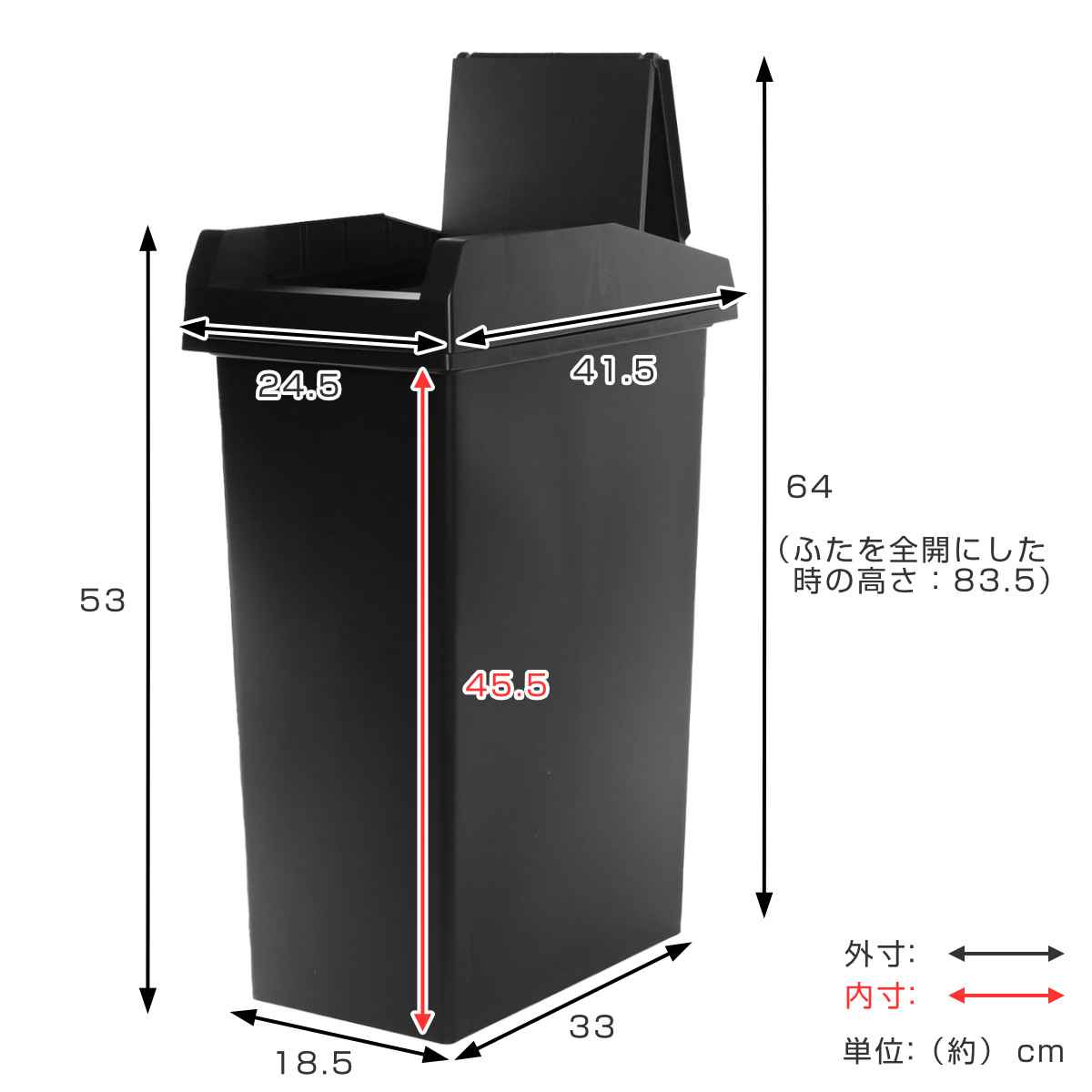 | サイズ | 約 幅24.5×奥行41.5×高さ53(cm) ふたを開けた時の高さ:約 83.5(cm) |