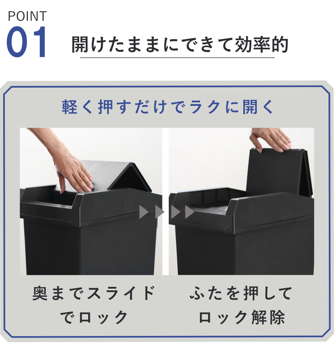 ふたをロックできる設計で、調理中など両手がふさがるときもスムーズにゴミ捨て。小さなひと手間を減らし、毎日の家事にささやかなゆとりを生み出します。