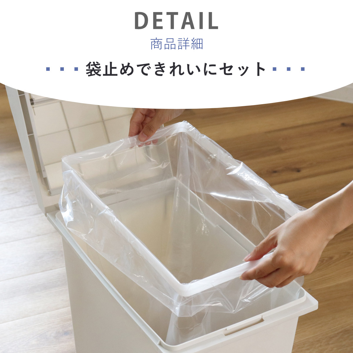 ゴミ袋をしっかり固定できる袋止め付き。外から袋が見えなくなり、生活感を抑えてお部屋の雰囲気を損ないません。