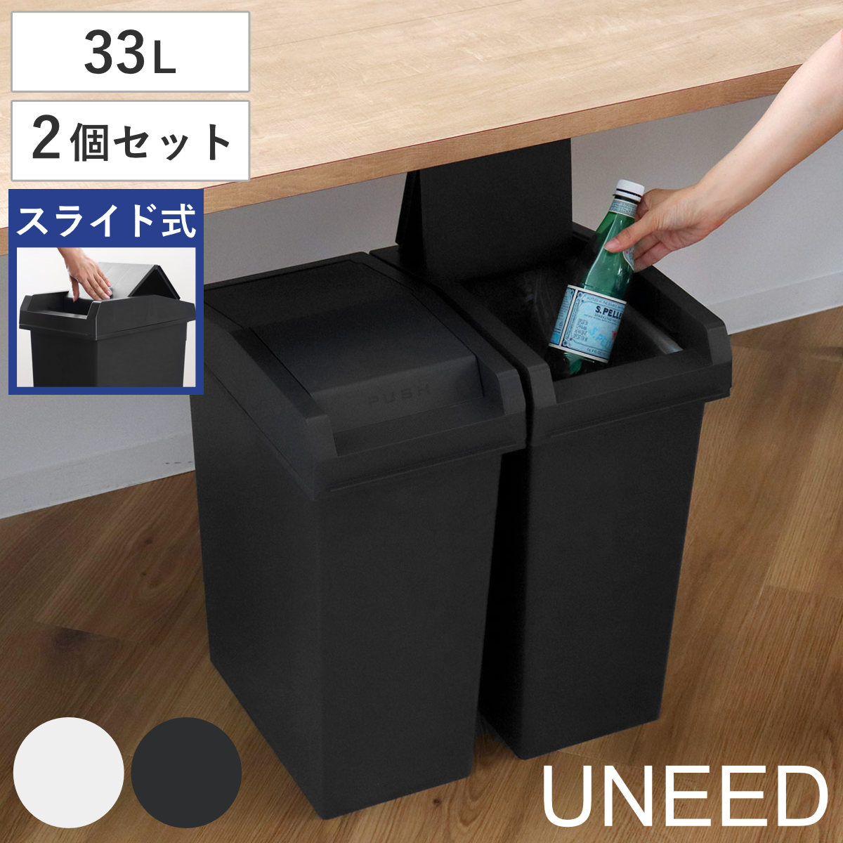 ゴミ箱 45L 同色2個セット ユニード スライドペール ( UNEED ごみ箱 45リットル 同色 2個セット 棚下OK ふた付き スライド式 スリム 分別 シンプル おしゃれ ホワイト ブラック 無地 キッチン 袋が見えない 袋止め付 ) 【ホワイト】