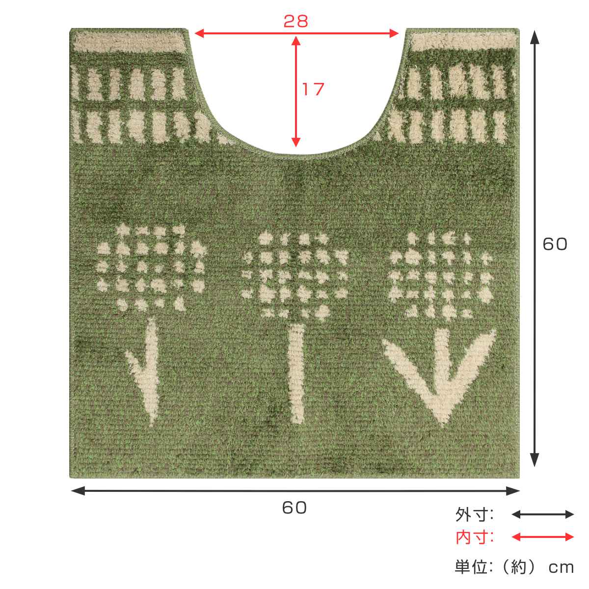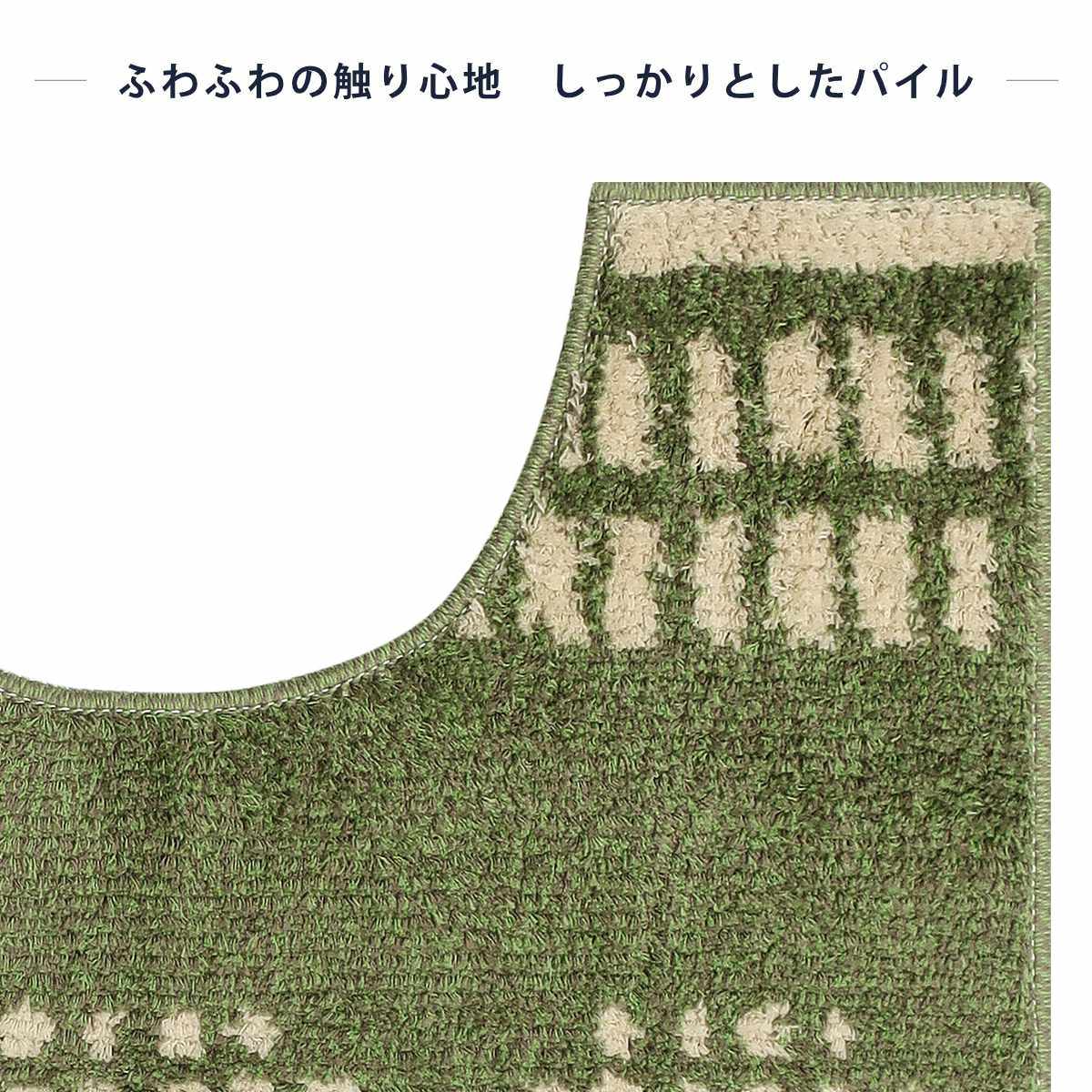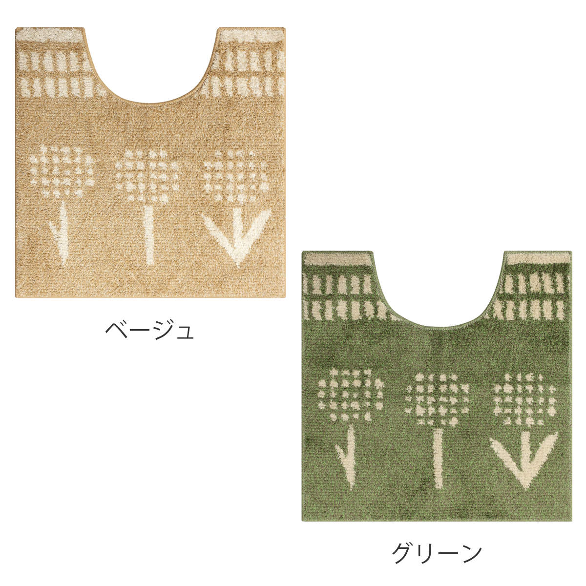 トイレマット 60×60cm luonto フラワー ( トイレ マット 洗える 洗濯可 滑り止め 足元マット トイレタリー すべり止め すべりどめ 花柄 洗濯OK グリーン ベージュ ) 【グリーン】