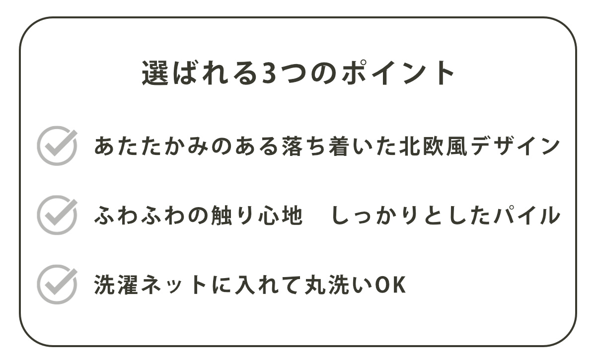 ボリュームのあるパイル地は、ふわふわとした肌ざわりが特長です。パイル部はポリエステル製でお手入れがしやすいです。