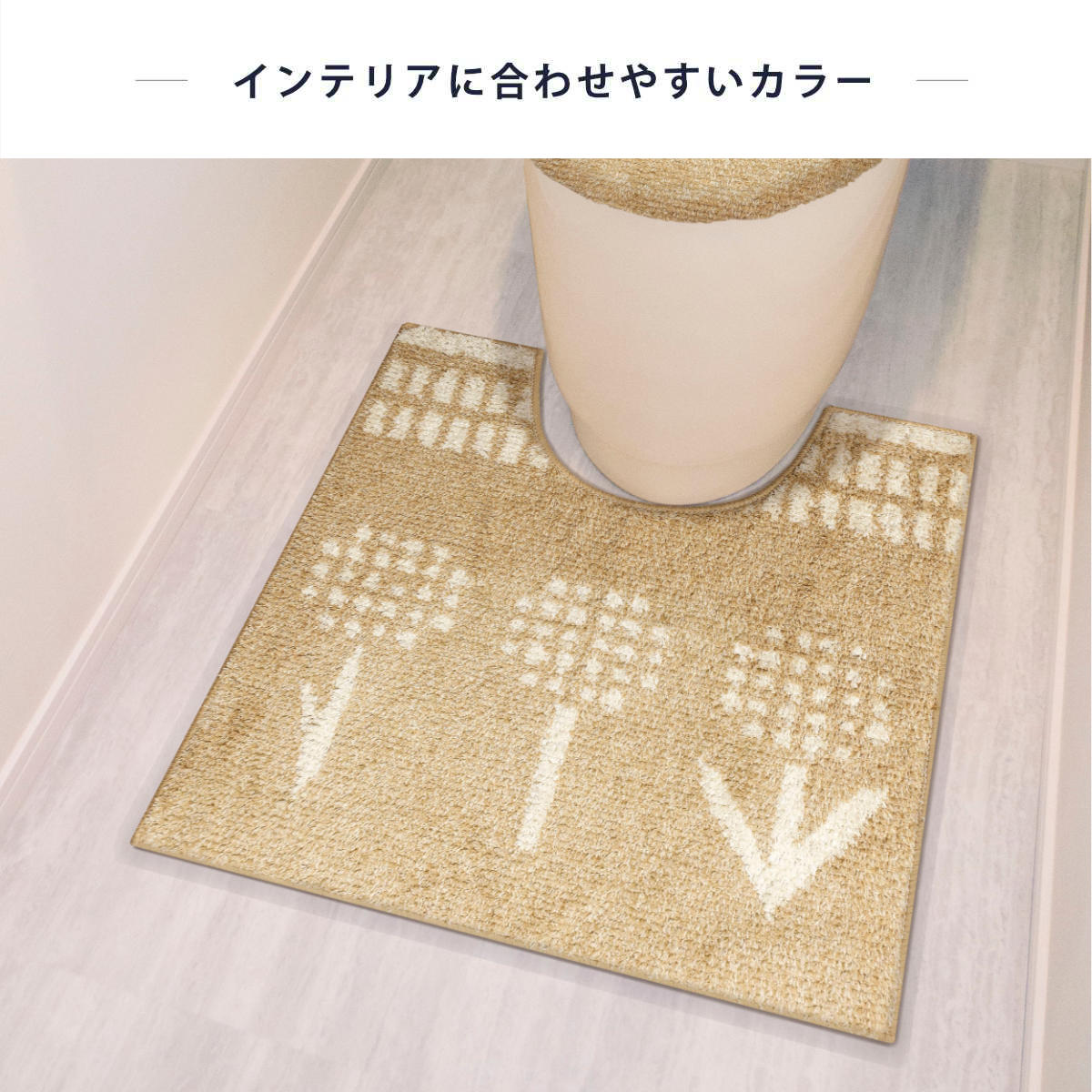 北欧風の可愛い雰囲気のトイレマットです。ふんわりと柔らかい肌触りの糸を使用しています。あたたかみのある落ち着いたボタニカルデザインは、トイレ空間をおしゃれに演出します。