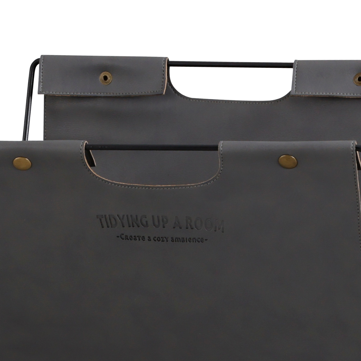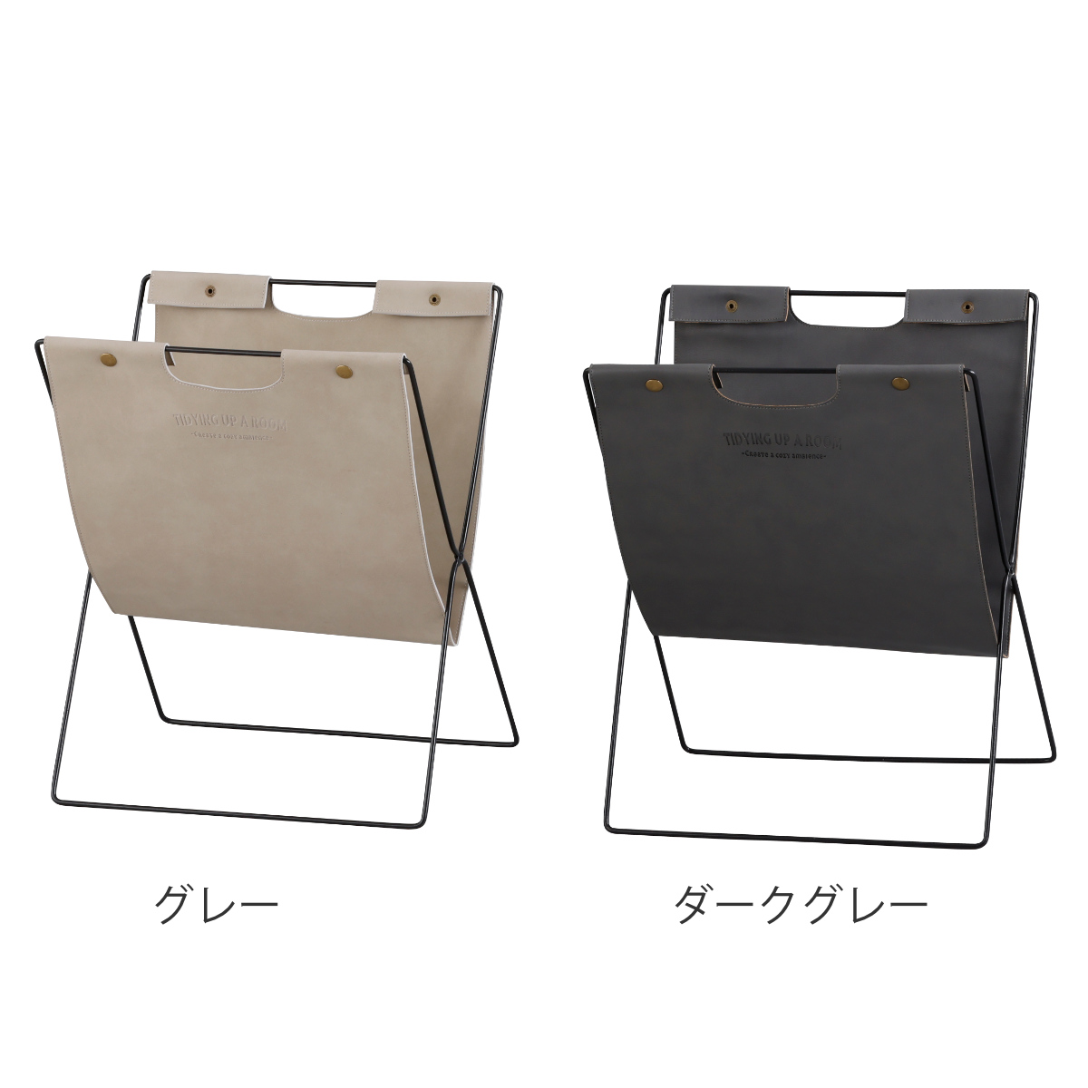 マガジンラック モンテシック 折りたたみ ( マガジンスタンド マガジン収納 幅32×奥行25×高さ45cm 本 雑誌 書類 収納 合皮 アイアンフレーム 荷物置き フェイクレザー 玄関 リビング 小物収納 小物入れ おしゃれ インテリア ) 【グレー】
