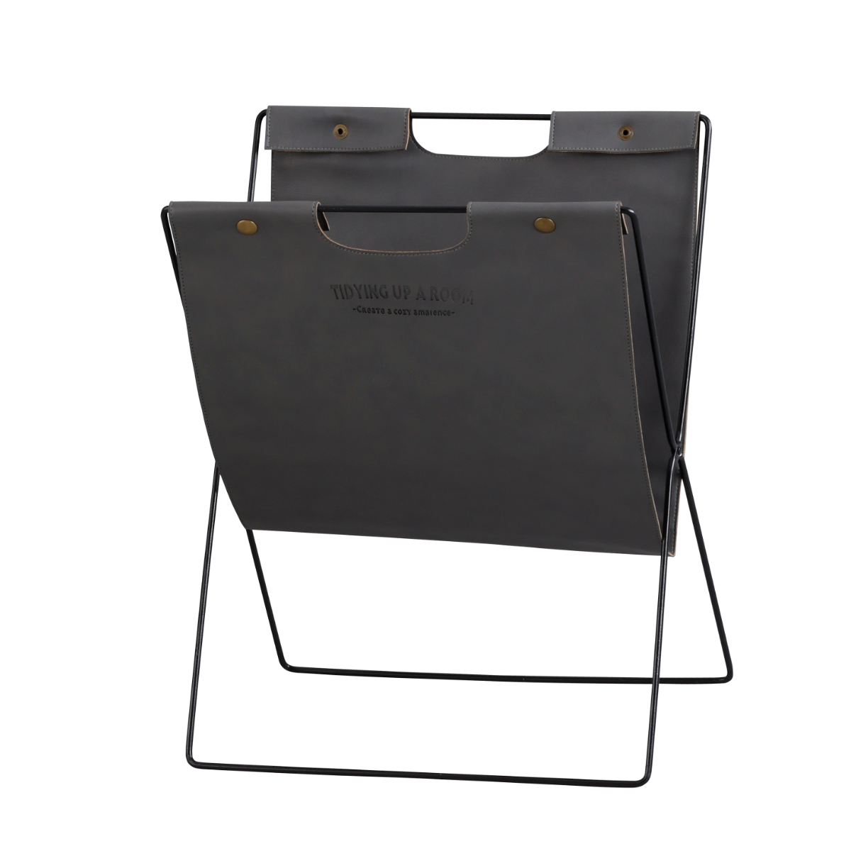 マガジンラック モンテシック 折りたたみ ( マガジンスタンド マガジン収納 幅32×奥行25×高さ45cm 本 雑誌 書類 収納 合皮 アイアンフレーム 荷物置き フェイクレザー 玄関 リビング 小物収納 小物入れ おしゃれ インテリア ) 【ダークグレー】